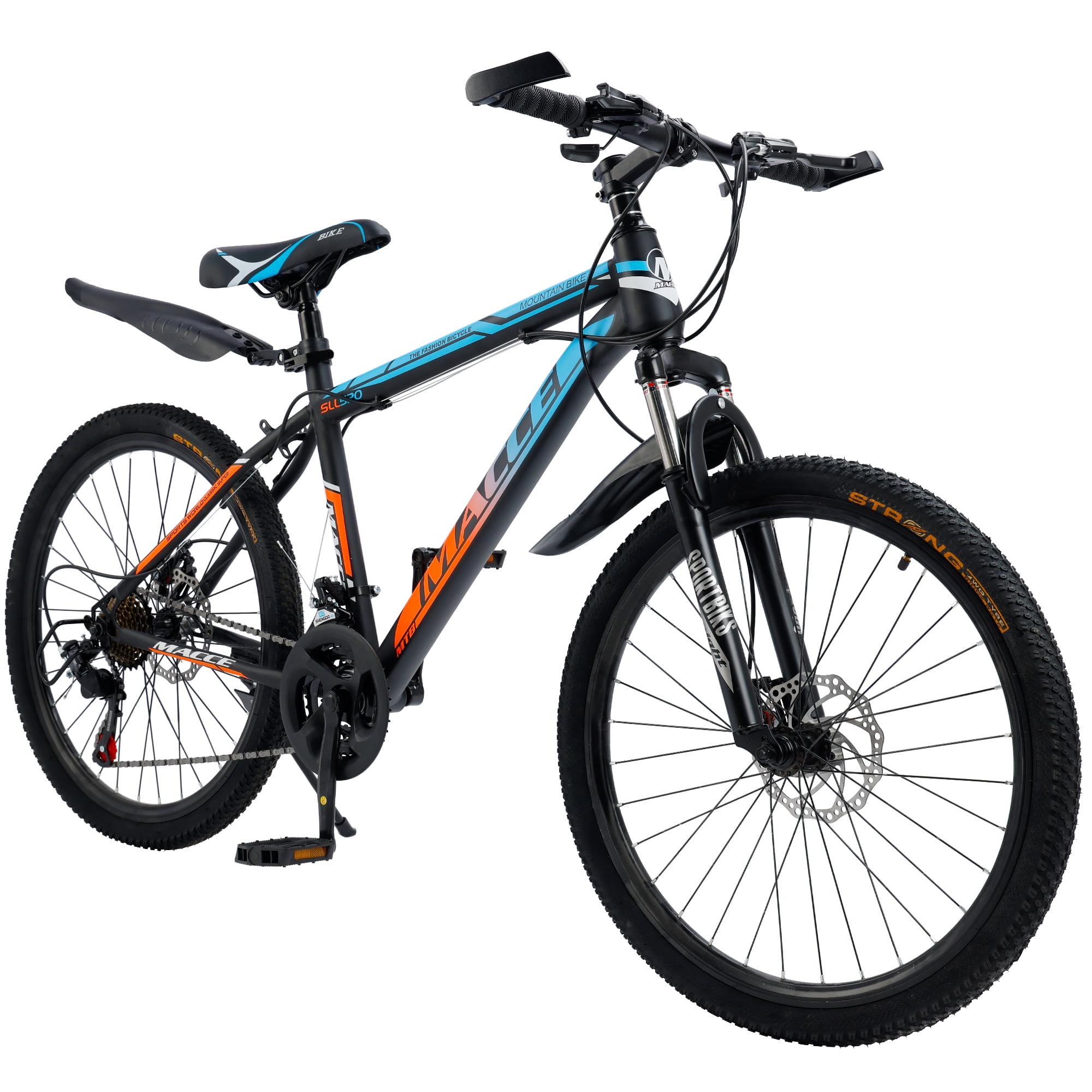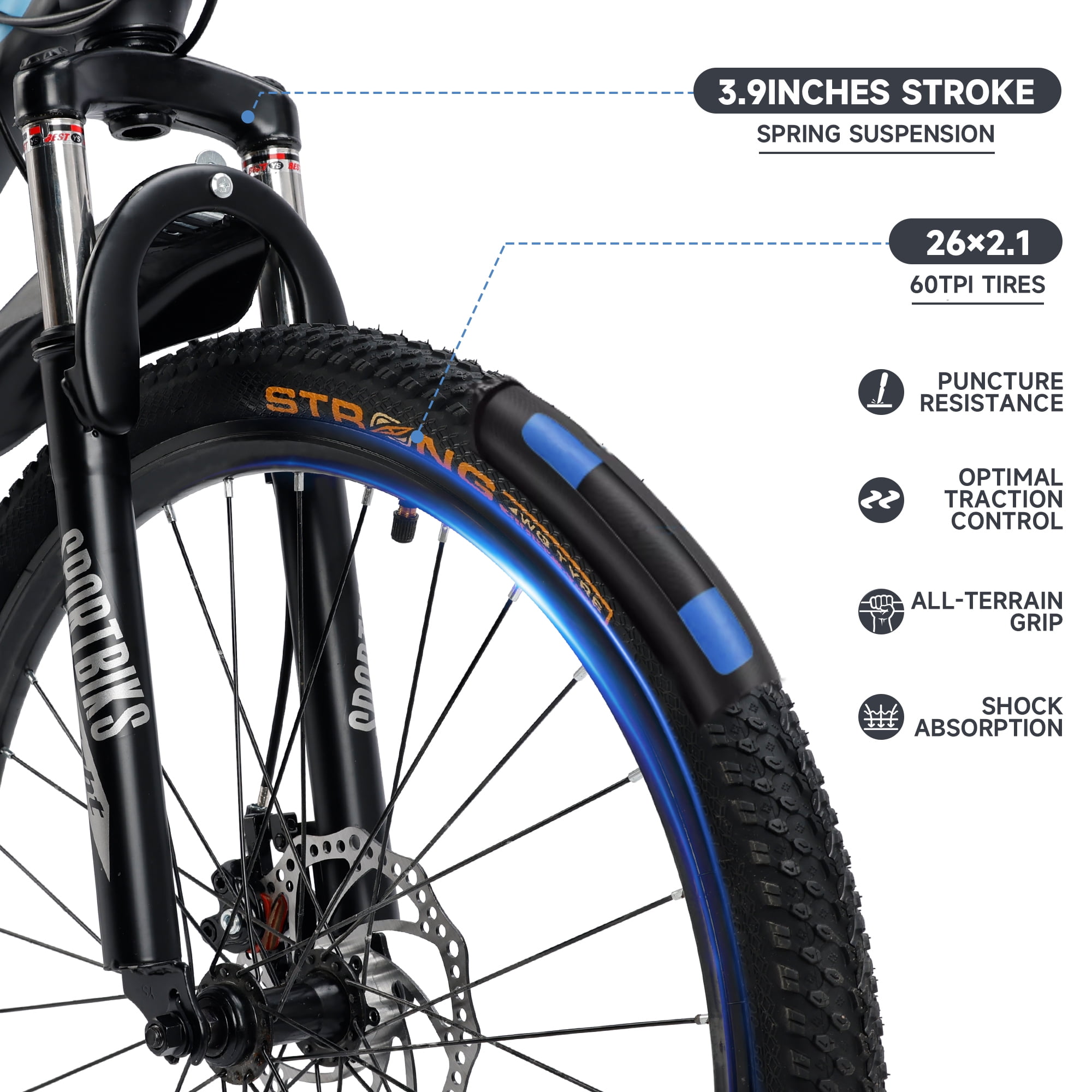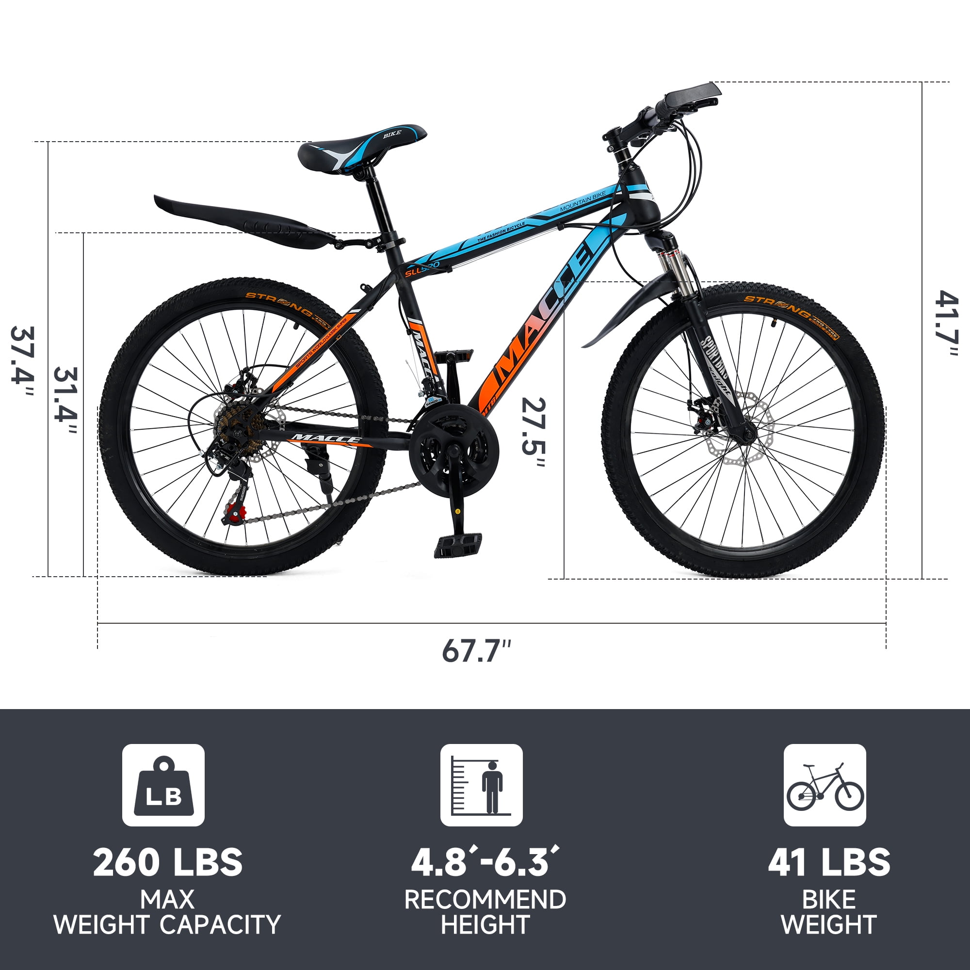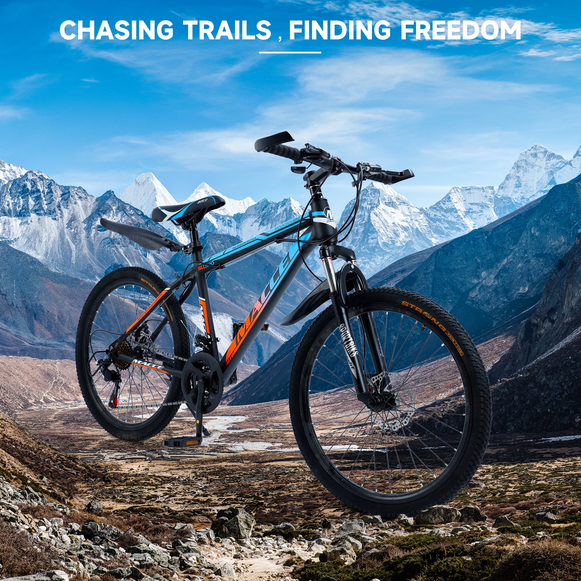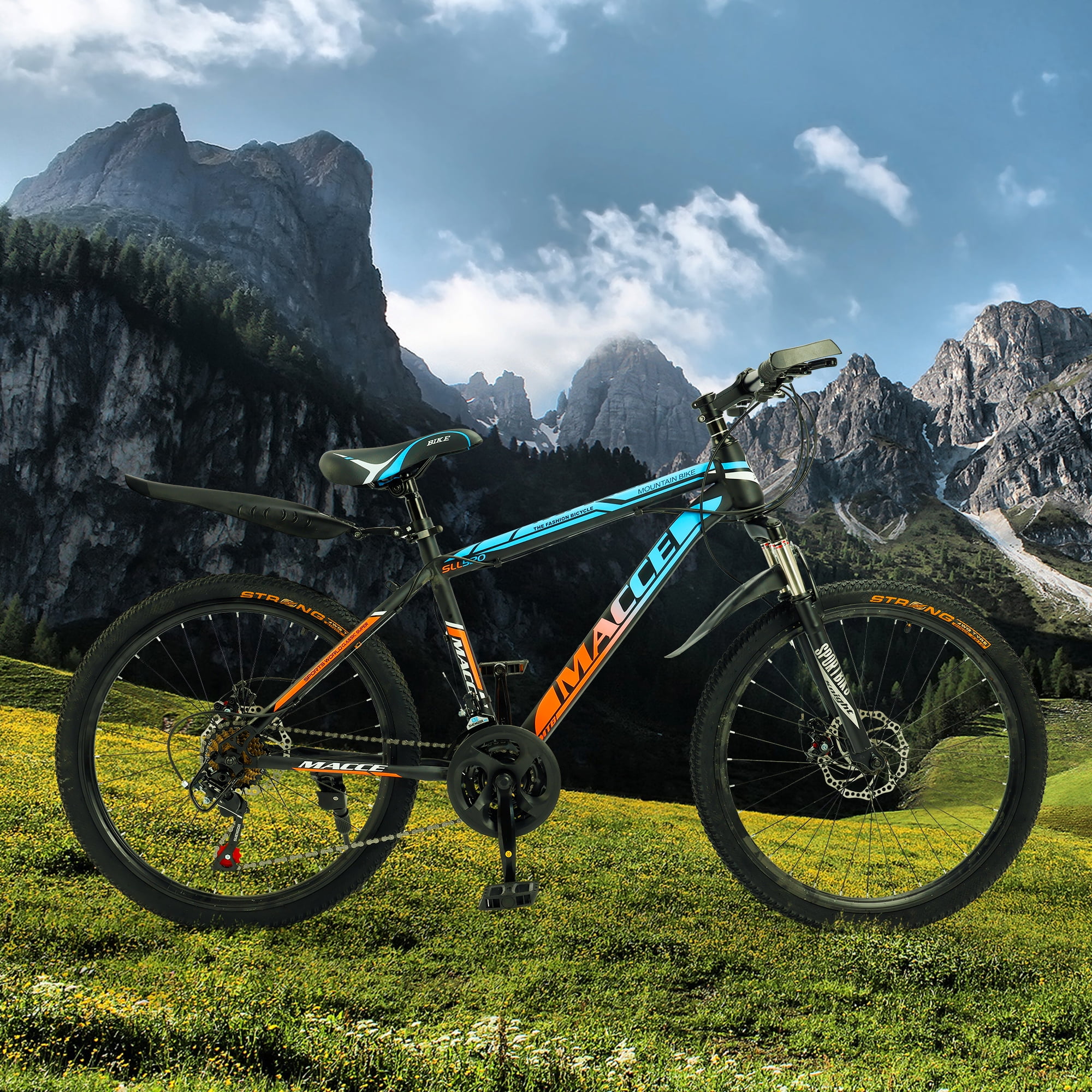 Gender Options: Available in both men’s and women’s designs for a personalized fit. Advanced Suspension: Experience unparalleled comfort and control with our state-of-the-art suspension system, engineered for smooth rides on any terrain. Reliable Disc Brakes: Equipped with high-performance mechanical disc brakes, ensuring precise and responsive stopping power even in challenging conditions. Factory-Tuned Performance: Each bike undergoes meticulous adjustment for optimal shifting and braking performance before leaving our facility. Automatic disc brake adjustment ensures hassle-free operation. Should you require further adjustments, our expert customer service team is always ready to assist. Easy Installation: Simplified assembly process for quick setup. Reach out to our customer service team for any installation guidance you may need.Specifications: Color: Customizable decals integrated into the paint finish for a sleek look. Speed: 24-speed transmission for versatile riding experiences. Frame: Crafted from high-quality, lightweight high carbon steel for durability and agility. Front Fork: Enhanced with a responsive spring suspension fork for superior shock absorption. Hub: Features a robust disc brake hub for reliable performance. Center Shaft: Utilizes a 3S sealed shaft for smooth and maintenance-free operation. Shift Control: Easy-to-use one-piece thumbshift for seamless gear changes. Chain: Durable 110-variable speed chain for smooth power transmission. Flywheel: 8-tower wheel design for efficient pedaling. Brakes: Dual-disc brakes for enhanced safety and control. Rim: Aerospace-grade aluminum alloy rims for strength and agility.Package Includes: 1 Mountain Bike 1 Assembly Tools 1 User Manual 1 Bike Lock 1 Air Pump 1 Bike Bell 1 Cup Holder as a special gift