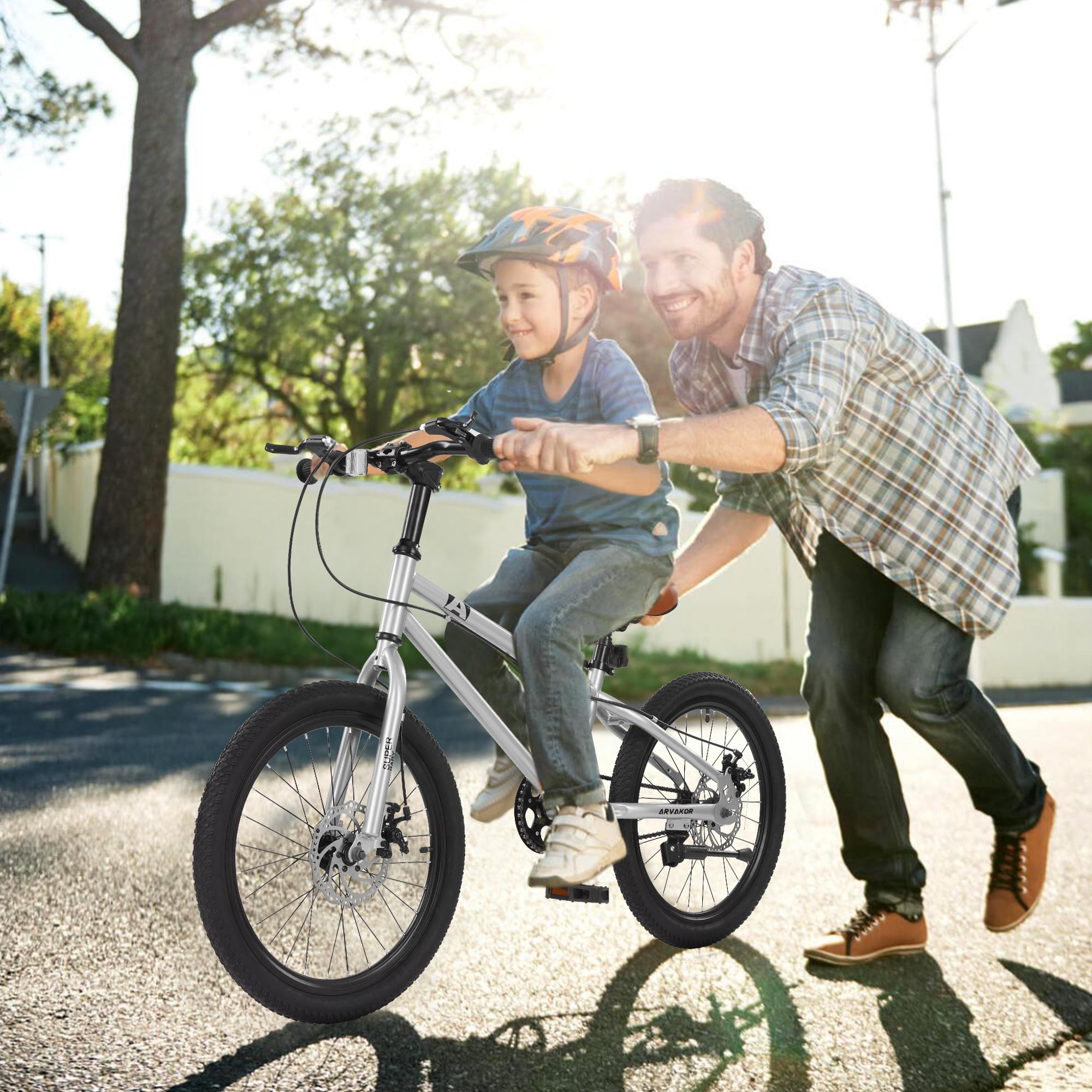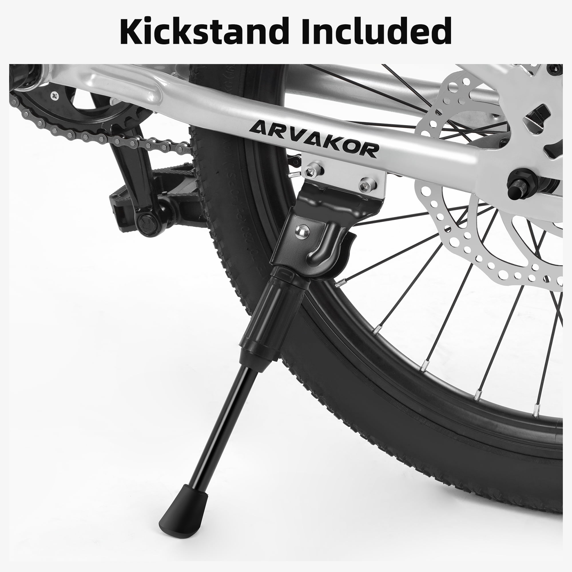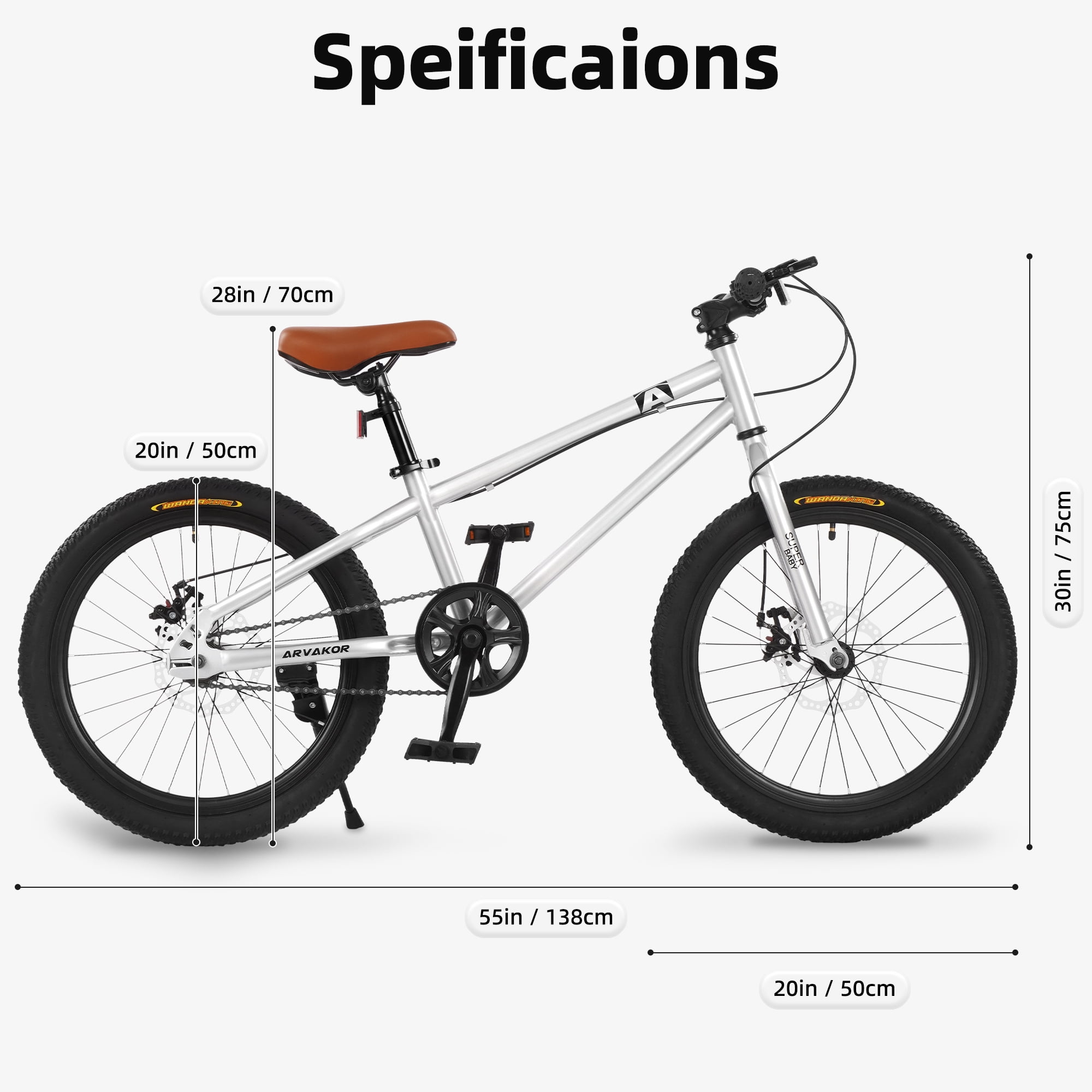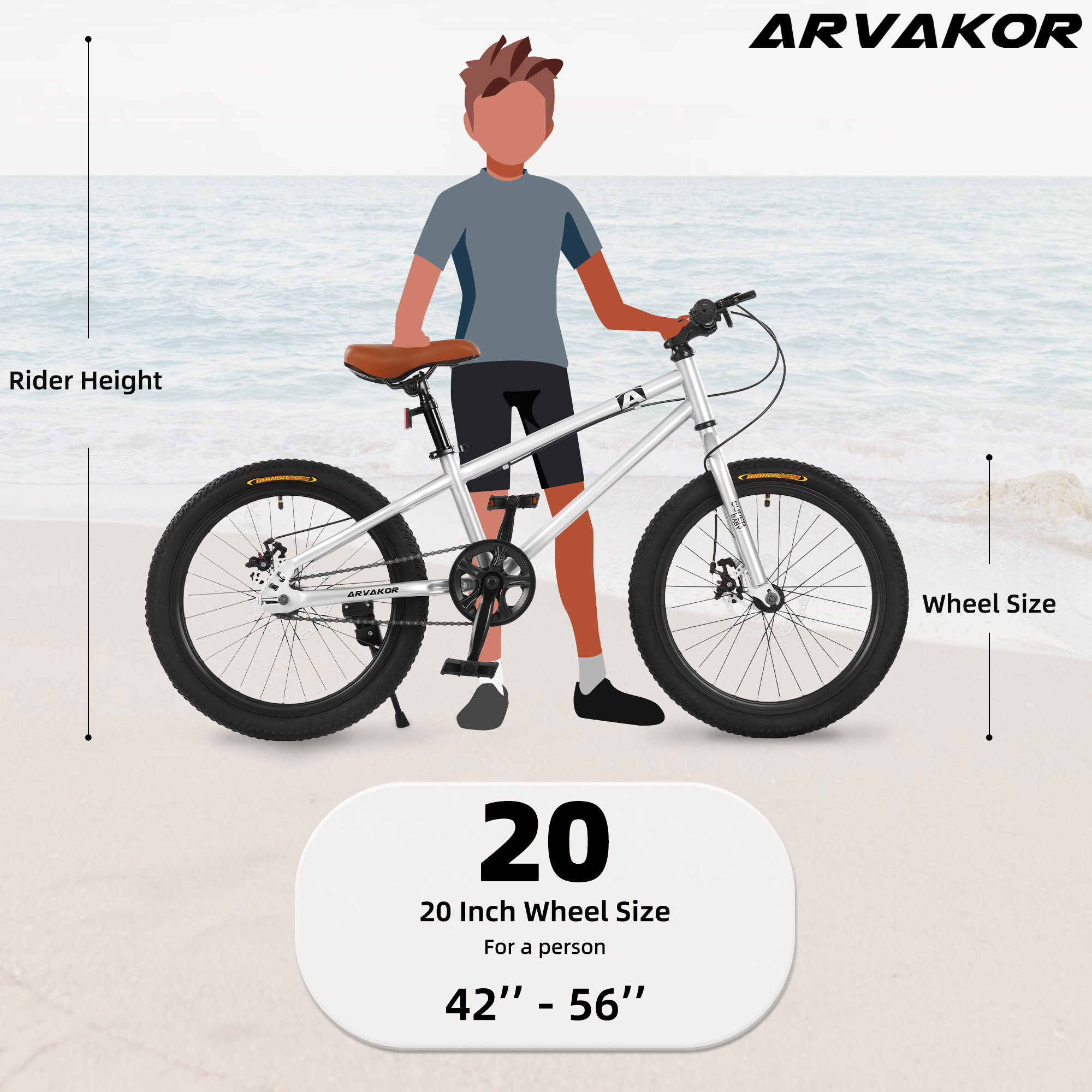 ARVAKOR 20 Inch Kids Mountain Bike for Girls Boys with Double Disc Brake and Wide Tire, Silver The ARVAKOR 20-Inch Kids Mountain Bike is a best choice for beginner. By simplifying drivetrain and suspension system, riders do not to worry about the durability of those elements. And this bike is ideal choice for kids daily lifestyle riding for funny and exercise, which is suitable for riders between 5 to 12-year-old.