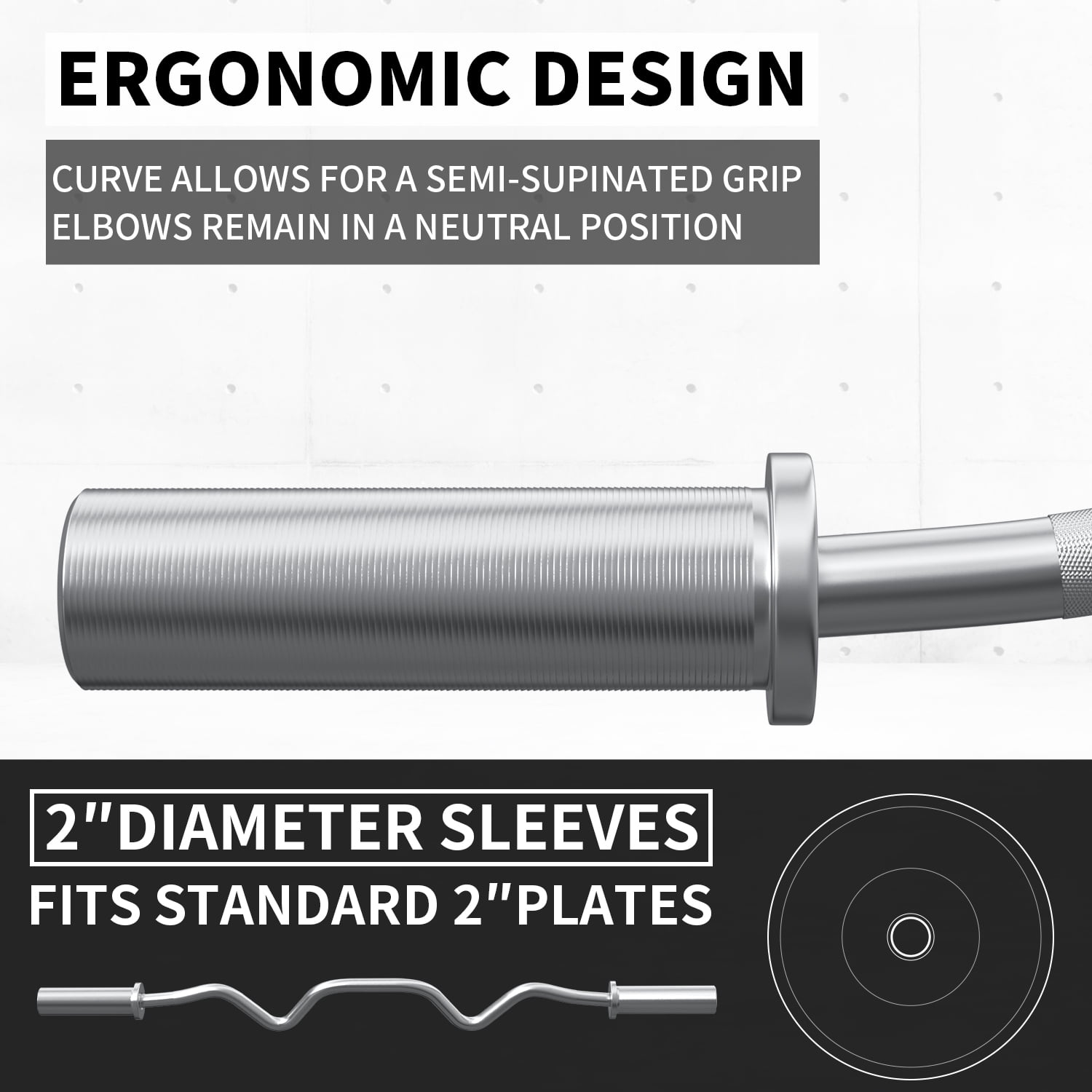 ARVAKOR EZ curl bar offers new ways of gripping your barbell, allowing you to target different muscle groups. With it, you can work your biceps, triceps, and abs. You can do spider curls, skull crushers, and preacher curls, rows, presses, and extensions. Product Specifications: Total Length: 48″ Knurling Length: 7.5″ Sleeve Diameter: 2″ Sleeve Length: 6.3″ Curved Shaft: 33.3″