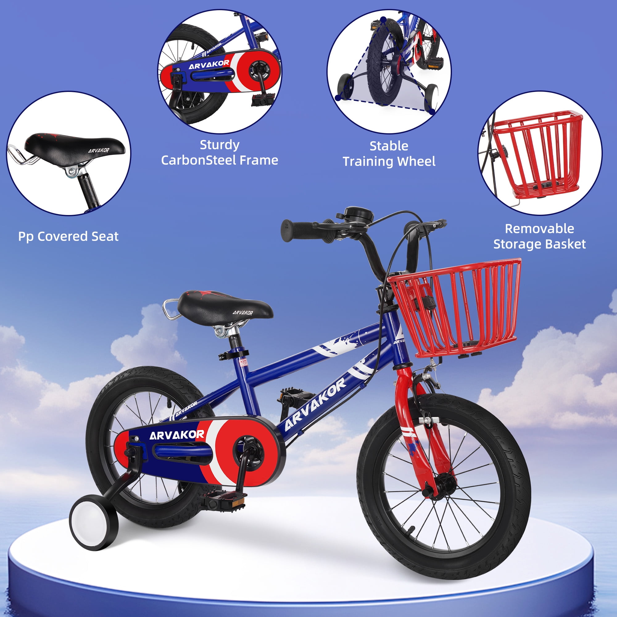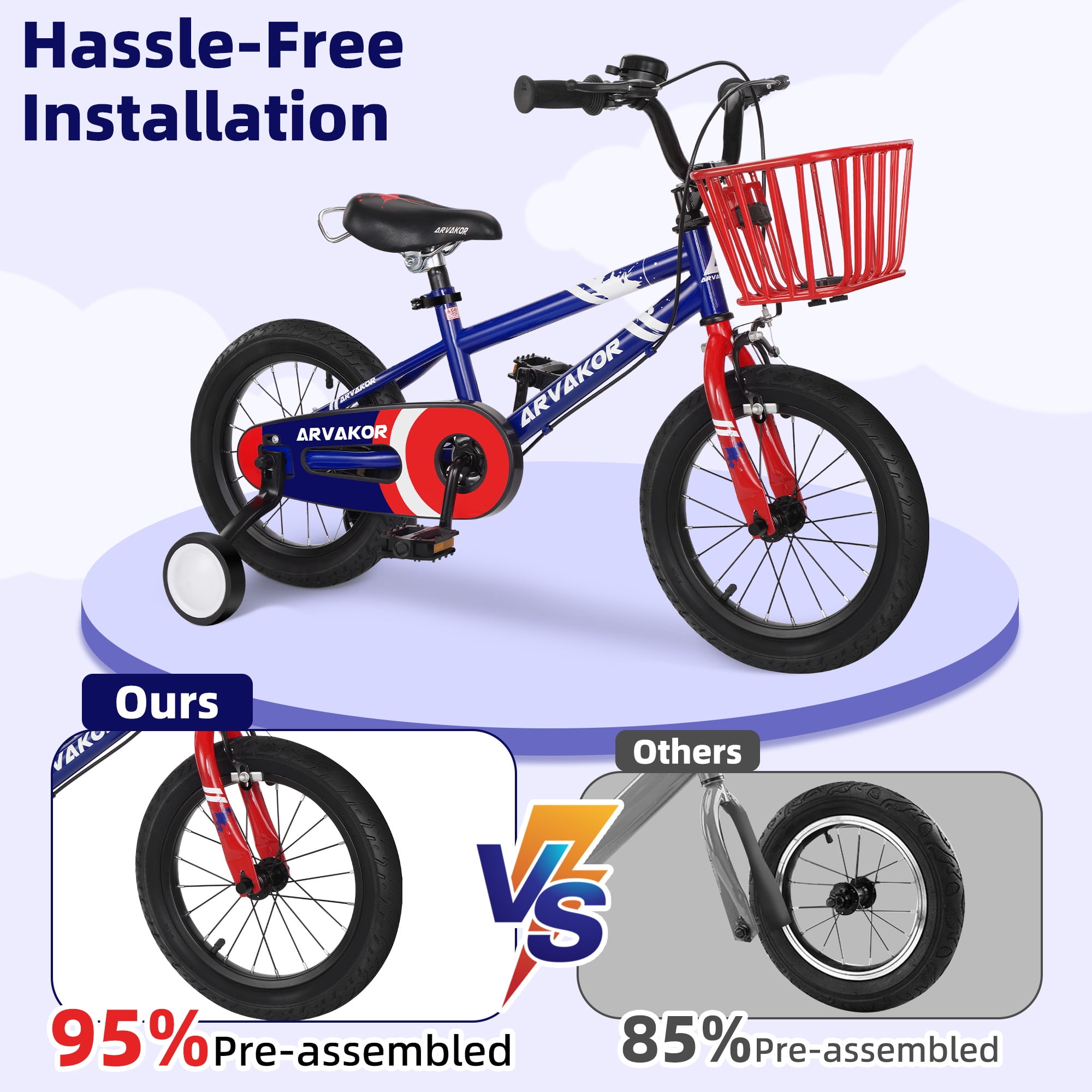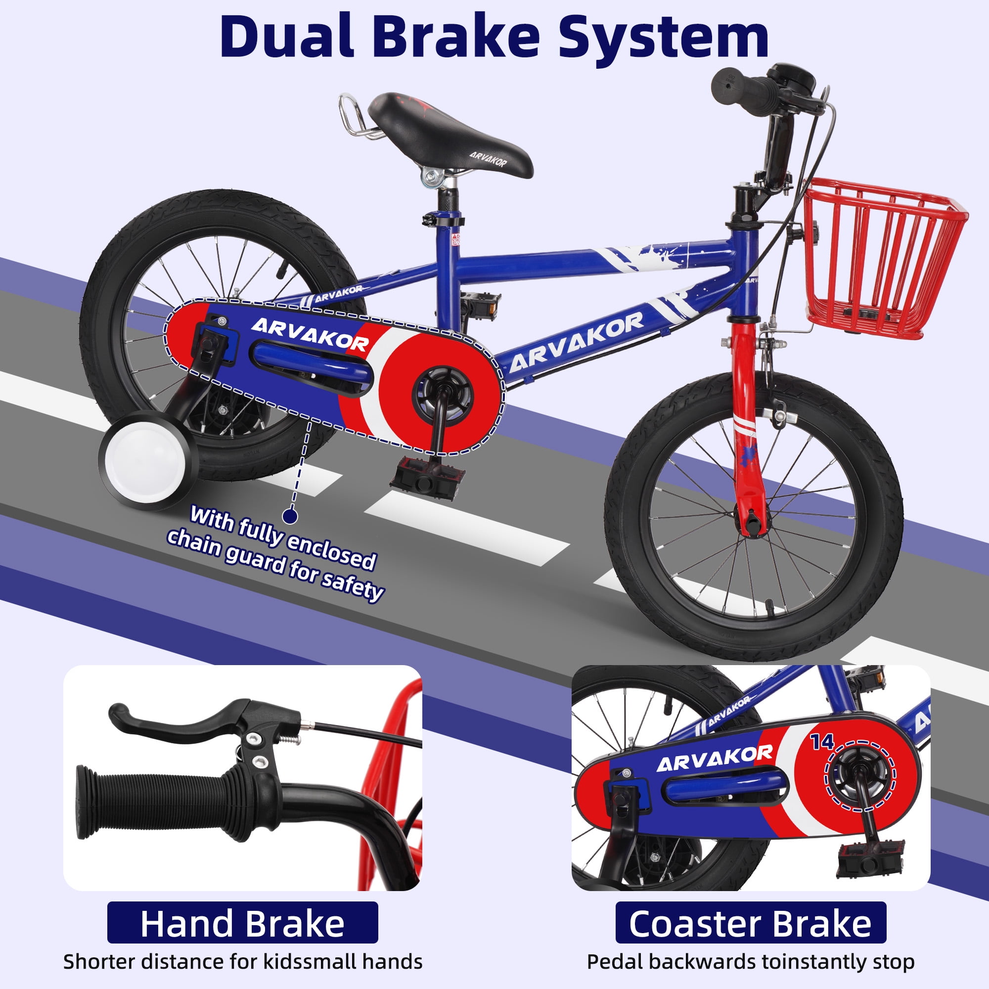 【🏆 SPORTY DESIGN】ARVAKOR kid’s bike was designed by inspiration from the BMX spirit, It’s all about fun, creativity, freedom, and friends. The sporty-looking is perfect for the next cycling star! 【🏆 SPECIFICALLY FOR KIDS】Each bike equipped with ARVAKOR patent sealed bearing for smooth pedaling. Training wheels come with 14 inch bikes, making it easy to maintain balance and learn to pedal even for young beginners. The water bottle and holder adds more joy to the ride. Fully adjustable seat and handlebar will give extra space when kids grow taller. 【🏆 SAFETY】Shortest travel distance grips provides extra braking efficiency, sturdy steel frame and 2.125″ wide cylinder tires will accompany every adventure of your little one and bring them home safe and sound. 【🏆 EASY ASSEMBLY】The bike comes 95% pre-assembled, with an elaborated instruction manual and all tools needed in the box. It is easy enough to put together in 15 minutes. 【🏆 ALWAYS RELIABLE】ARVAKOR bike complies with the CPSC standards, and is trusted by millions of families in more than 80 countries globally. Customers will be provided with high-level warranty and local 24 hours service when contacting ARVAKOR for any queries.