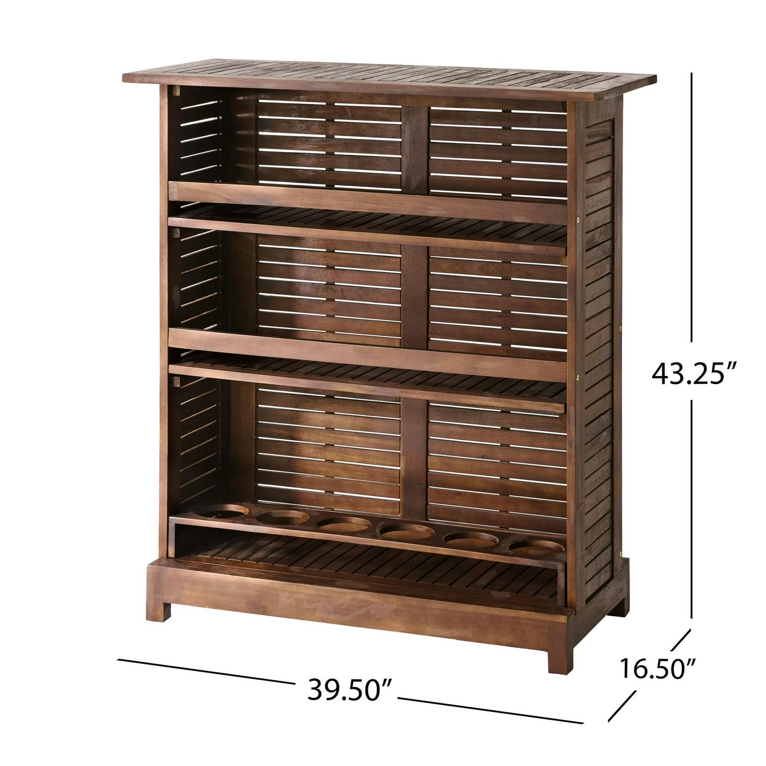 Looking for a night out but can t get away Then bring the party to you. Featuring a gorgeous acacia wood build and a stunning slat panel design, our bar table will make a striking statement in your outdoor space. This table perfectly complements a wide variety of styles, allowing you to choose a set of bar stools of your liking. Finished with two shelves and six-bottle holders, this bar table is as handy as it is stylish, making this the perfect outdoor piece for your home.