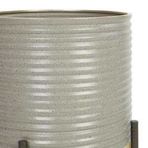 Introducing our sleek and versatile metal planters from Aspire Home Accents, the perfect addition to your home or office decor. These neutral round planters feature a stone-like finish with a ribbed design in shades of gray and tan, providing a subtle touch of texture to any space. With a deep capacity, each round planter can accommodate a large fern or potted plant, allowing you to bring a touch of nature indoors. Whether you choose to place them on a covered patio, in your living room, or at your desk, these round planters are sure to complement any decor style. Made to last, these durable metal planters are an excellent investment that will enhance your space for years to come.