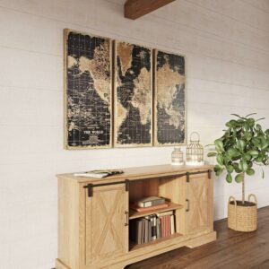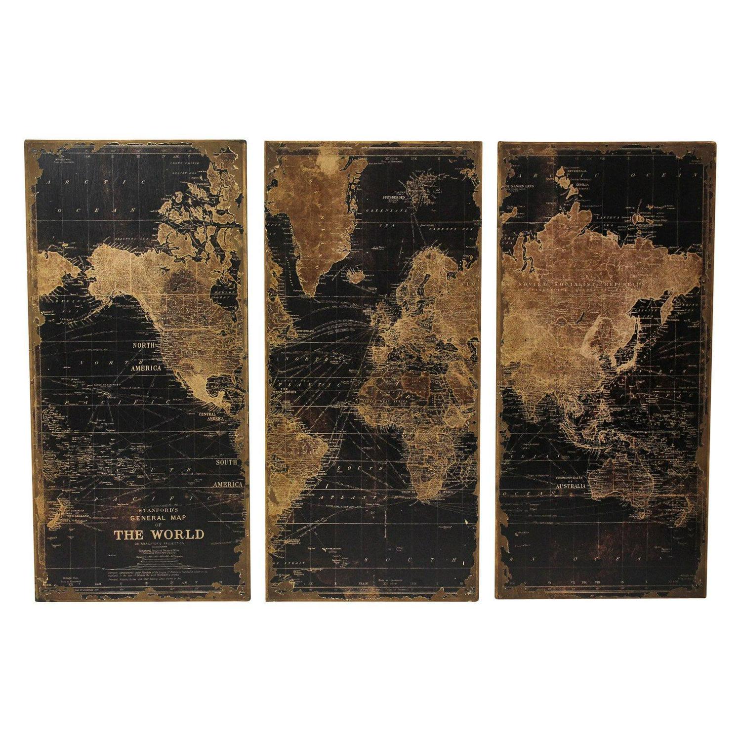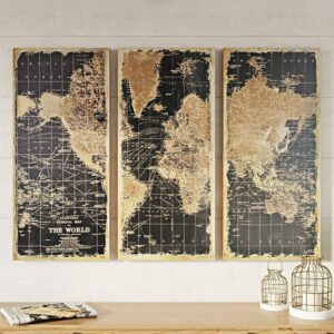Aspire Home Accents Wood Maps Art Print, Set of 3 – 48 x22