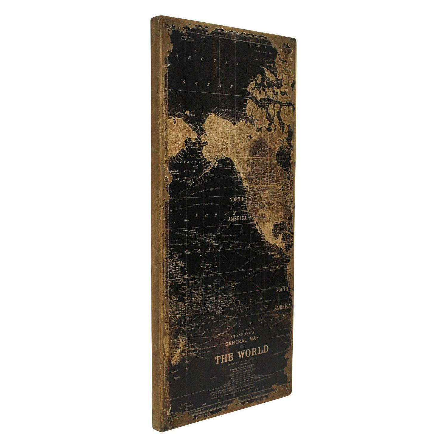 Enhance your living space with the Stanford World Map Wall Decor, a symbol of global sophistication and culture. Perfect for travel enthusiasts and connoisseurs of fine design, this durable solid wood map adds a touch of elegance to both living rooms and home offices. Distressed for a vintage look yet modern in appeal, it seamlessly blends with contemporary, traditional, eclectic, and industrial decor styles. Whether paired with neutral hues or vibrant colors, this world map wall art is a timeless addition to any home. Elevate your interior design with this must-have piece.