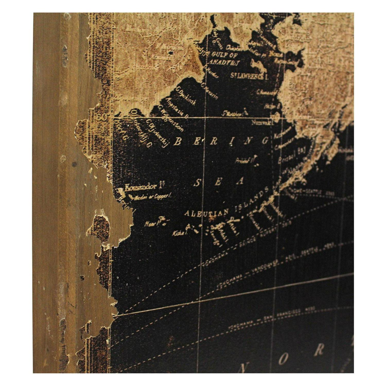 - Old world map printed directly on wood panels