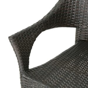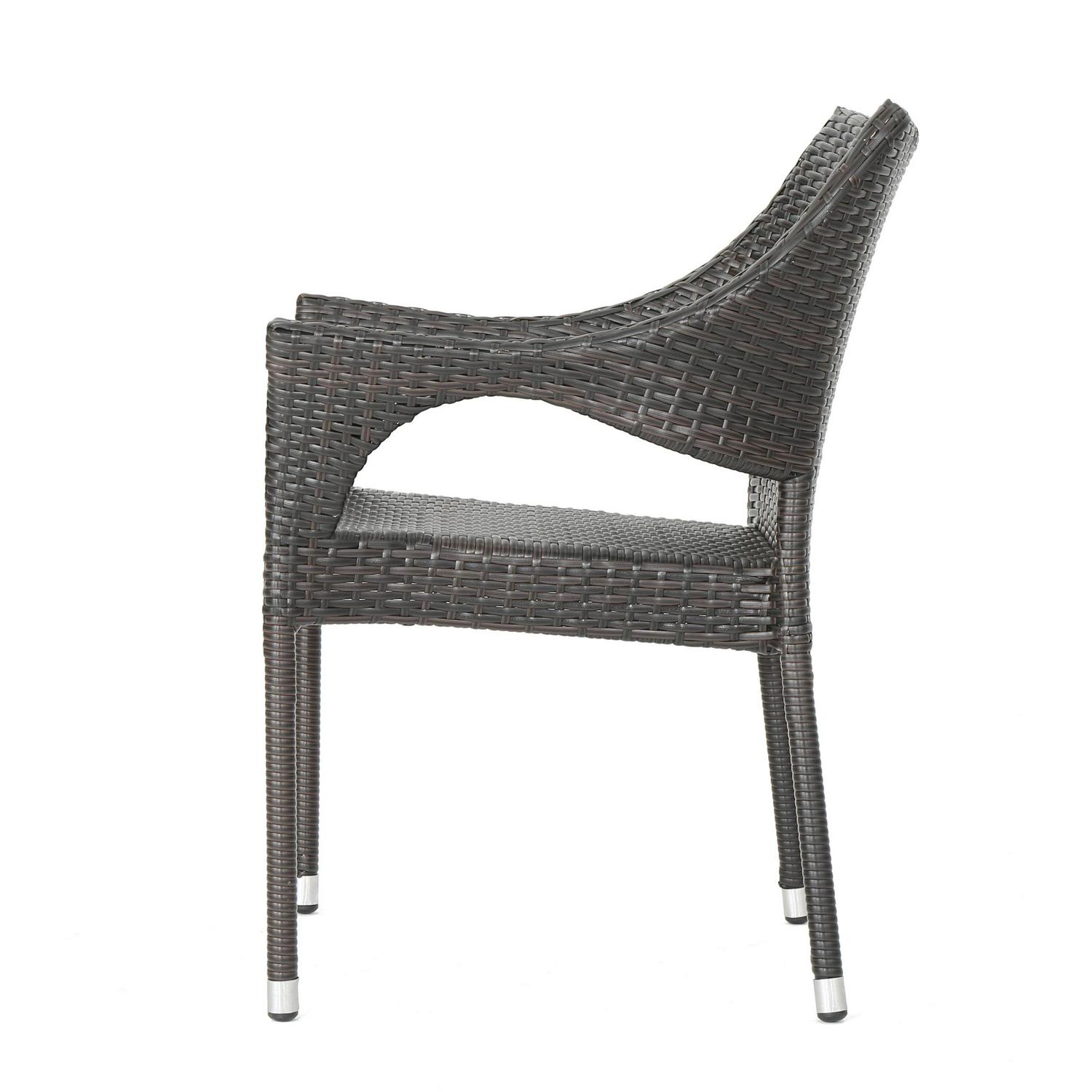 Astrid Outdoor 3 Piece Wicker Chat Set with Stacking Chairs and Hourglass Side Table, Multibrown