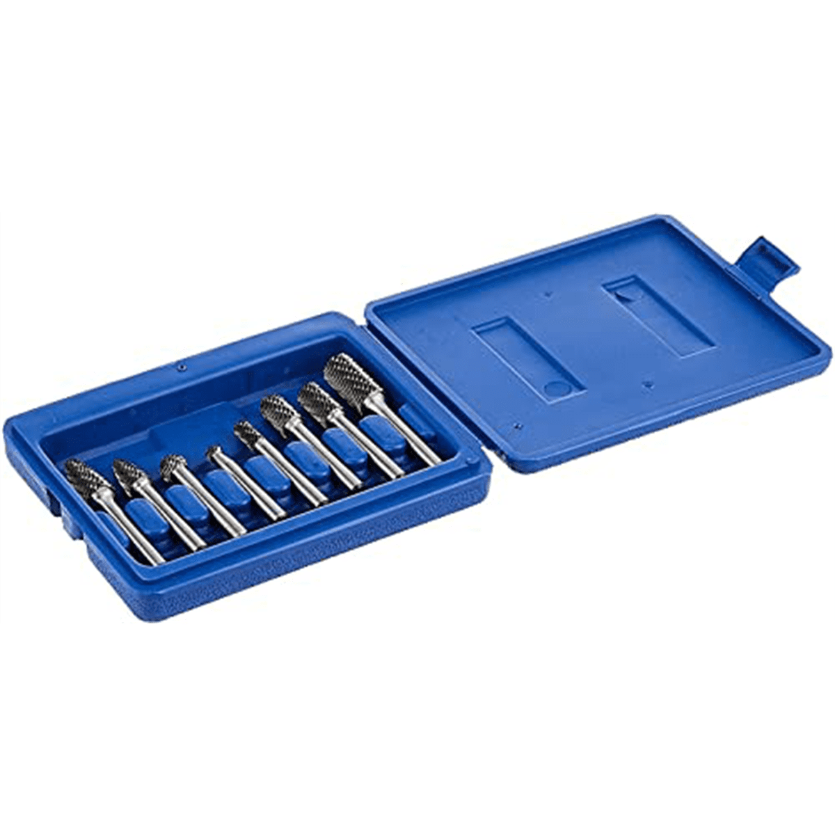 8-Piece Double Cut Carbide Rotary Burr Set Perfect for opening holes, or porting heads on ferrous materials Sintered and machined from 100% new raw tungsten carbide Unique tooth angle prevents chipping for the longest lasting design possible 1 year warranty from manufacturer with simple replacement process