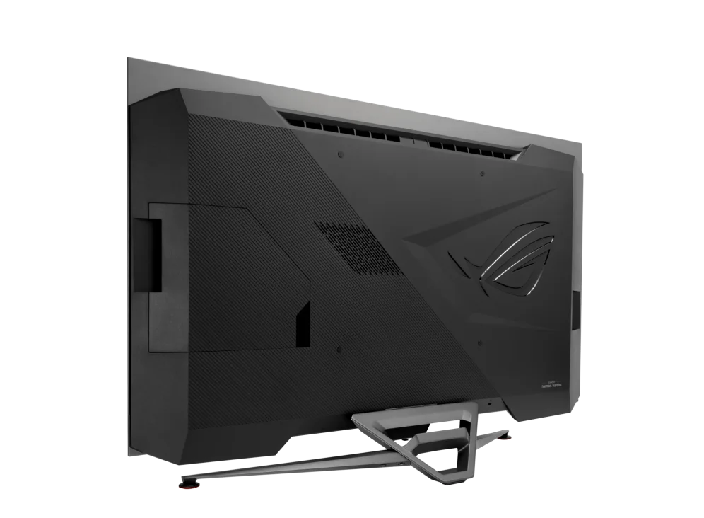 41.5-inch 4K (3840 x 2160) OLED gaming monitor with 138Hz (overclocked) refresh rate, designed for immersive gaming. Features extreme blacks, high perceptual brightness and ultrafast 0.1 ms response time, with 98% DCI-P3 color gamut and Delta E <2 color difference for astonishing HDR performance. Custom heatsink enables up to 8%-lower temperatures for better long-term OLED performance. Gamer-friendly optional uniform-brightness setting for even brightness levels. Anti-glare micro-texture coating reduces reflections for accurate colors and better viewing experiences. Extensive connectivity options including DisplayPort™ 1.4 with Display Stream Compression (DSC), HDMI® 2.1, USB hub, and a tripod socket on top of the monitor. ULTRA-REALISTIC COLORS The PG42UQ gaming monitor features true 10-bit color depth and a cinema-grade 98% DCI-P3 gamut to deliver unparalleled realism. Each monitor is pre-calibrated to Delta E < 2 to ensure the very best color reproduction on its brilliant OLED panel. DETAILED VISUALS AND CLEARLY-DEFINED TEXT ROG Swift OLED gaming monitors feature the latest generation OLED panels designed for greater efficiency and brightness. The sub-pixel layout provides extremely detailed visuals and clearly-defined text to upgrade the viewing experience. Anti-glare micro-texture coating on panel surface reduces glare for fewer distractions Built-in custom heatsink ensures 8% lower temperatures for OLED longevity Uniform brightness setting maintains brightness levels for comfortable viewing Unique panel sub-pixel layout provides extremely detailed and clearly-defined text Exceptional Color This 41.5" OLED display is factory calibrated support 10-bit color with Delta <2 accuracy, covering 98% of the DCI-P3 and 133% of the sRGB gamut. High-Dynamic range support, featuring a max contrast ratio of 1,500,000:1 deliver true-to-life images with bright highlights and deep shadows. The also has 450 nits of brightness with optional settings to ensure uniformity across the screen. Intelligent Cooling Design A custom heatsink helps to ensure optimal temperatures during extended gaming sessions, reducing the likelihood of issues such as image sticking. Less Glare, Fewer Distractions A special matte micro-texture coating on the surface of the display significantly reduces glare. NVIDIA G-Sync Compatible NVIDA G-Sync enables the monitor to dynamically adjust its refresh rate to the frame rate being output by the graphics card, thereby greatly reducing screen tearing, stuttering, and other artifacts. Fameless Design This display helps to keep you focused on the screen by eliminating distracting bezels.