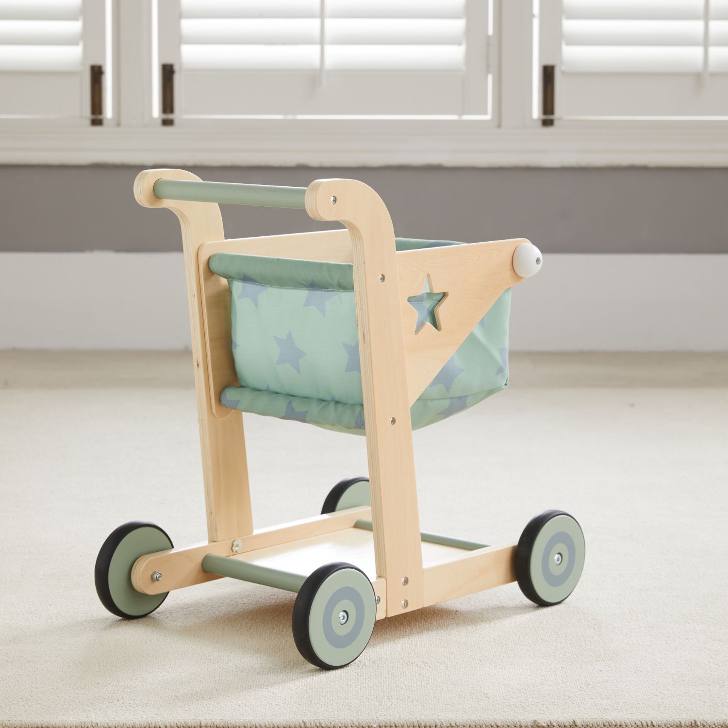Looking for an engaging playtime addition that sparks imagination and fosters early development? Meet our Wooden Shopping Cart for Toddlers! This sturdy baby push walker is designed to inspire endless adventures while nurturing crucial motor skills and imaginative play. Crafted from durable wood, it’s a safe and eco-friendly option for curious toddlers aged 1-3. Encourage exploration as your little one maneuvers this cart, enhancing balance and coordination with every push. Crafted for interactive play, this wooden push walker doubles as a baby doll stroller for 1 year old to 3 years old, fostering nurturing instincts and creative role-play scenarios. The wooden wheels on this wooden doll stroller are covered with a thick layer of rubber for a smooth ride, letting your child pretend to shop like in real life. It helps them learn and use their imagination while playing. The spacious basket holds lots of toys, helping kids learn to tidy up and giving plenty of room for their favorite toys. SPECIFICATIONS: Material: Wood Age Range: 1-3 years old Product Dimensions: 18 x 18 x 19 inches Target gender: Unisex Material Type: Wood Style: Baby Walker, Learning Walker, Push-pull Walker Batteries required: No Item Weight: 4.69 pounds