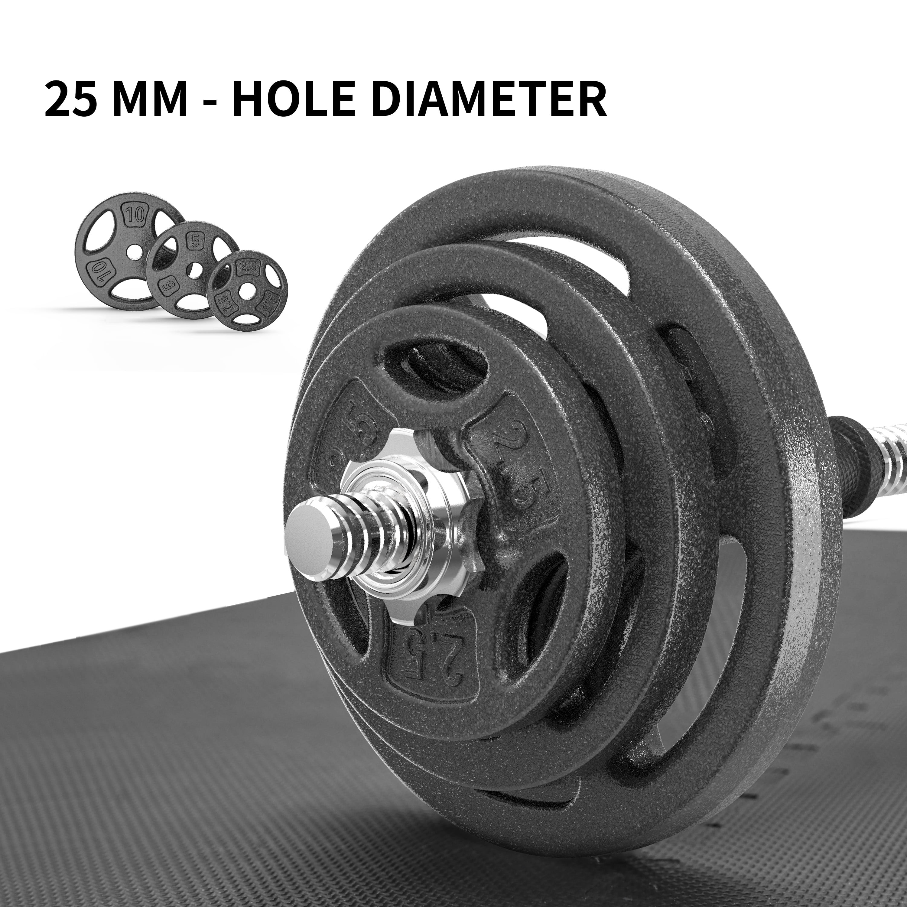 Athletic Works 35LB Cast Iron Standard Weight Plate Sets, 2 piece Each of 2.5LB and 5LB and 10LB Solid & Durable Material: Made of heavy-duty solid iron by automatic casting lines to ensure a quality and accurate plate. Hammertoe Paint Finish prevents not only fading, chipping and peeling but keeps it odorless for a long-lasting product Multi-Function: Weight plates set can be used to build muscles and enhances body strength, it is a good choice for weightlifting, strength training, balance training and physical flexibility training for man and women. Single plate is also great for warm up. Available in multiple weights and sizes: The Plate Set is in available of weights including 2.5lb, 5lb, 10lb.
