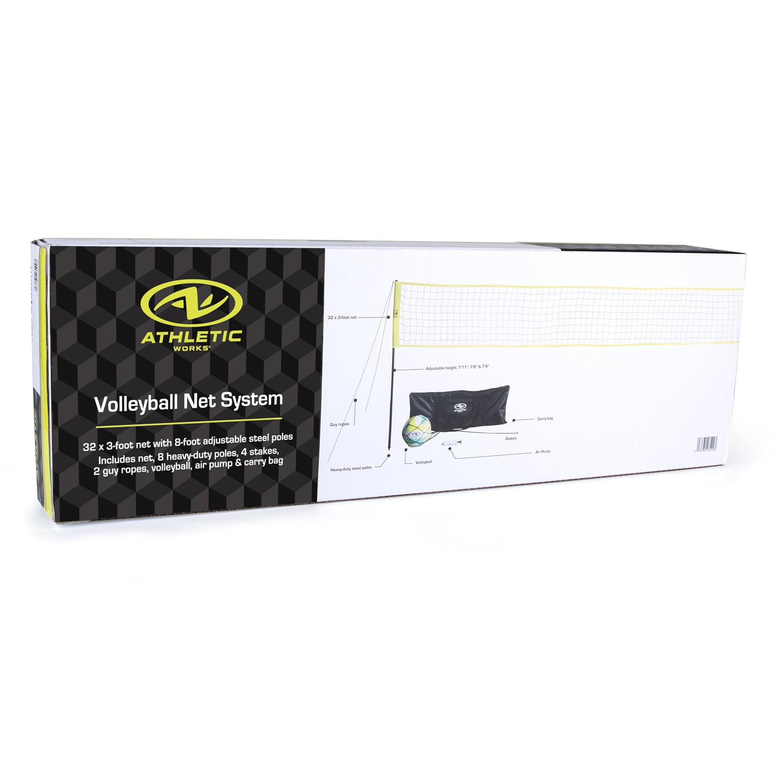 Perfect for backyard or beach use Complete game set with regulation-size volleyball Heavy duty poles with push-lock design Easy setup with sturdy construction Athletic Works Volleyball Net Set is portable and allows you ability to bring to the beach, backyard parties, or parks!