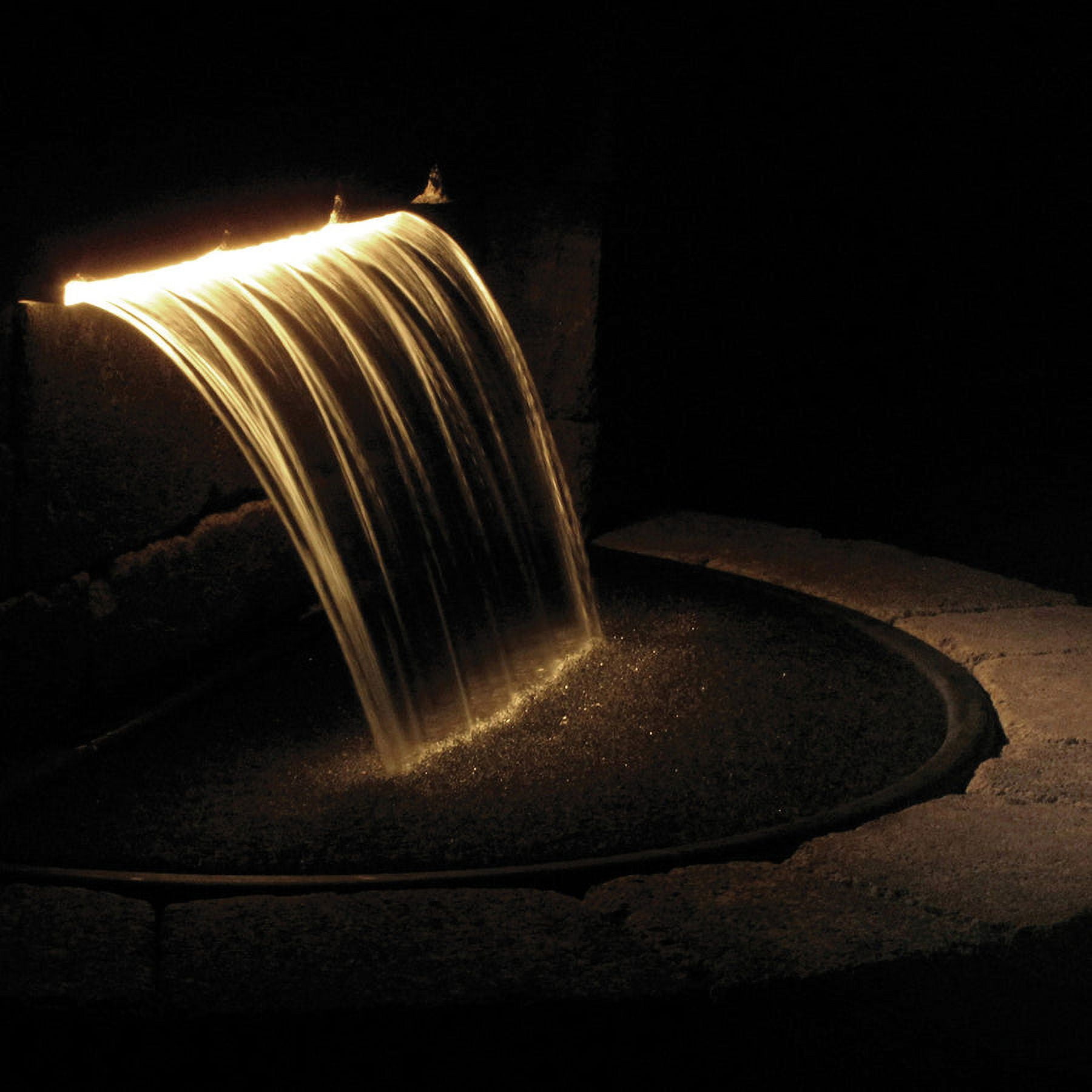 Atlantic 12″ Colorfalls – SOL White produces a sheer of lighted water emerging from a concealed source inside vertical walls Colorfalls adapt to any wall material – pavers, tile, brick, stone, wood – the only limit is your imagination Replaceable LED light bar Colorfalls feature a 5″ lip, 30′ power cord and includes a 12 volt outdoor transformer Complete your deisng with an Atlantic Formal Spillway Basin or Basin Kit