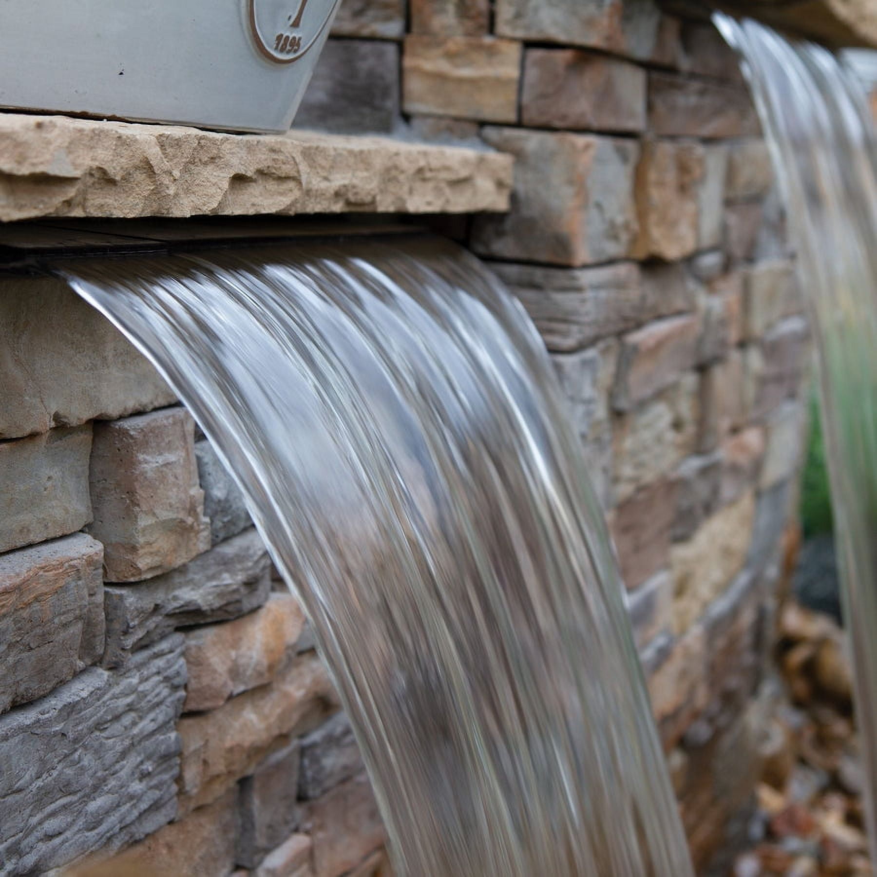 Atlantic 24″ Colorfalls – Ice Blue produces a sheer of lighted water emerging from a concealed source inside vertical walls Colorfalls adapt to any wall material – pavers, tile, brick, stone, wood – the only limit is your imagination Replaceable LED light bar Colorfalls feature a 5″ lip, 30′ power cord and includes a 12 volt outdoor transformer Complete your deisng with an Atlantic Formal Spillway Basin or Basin Kit