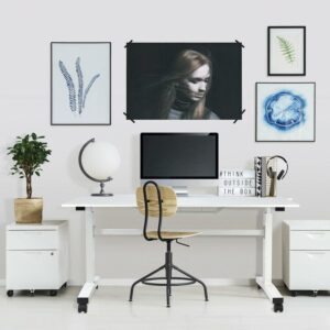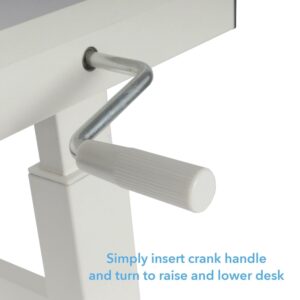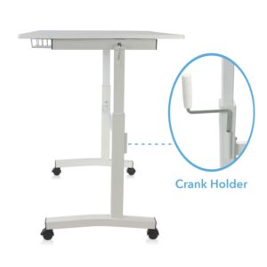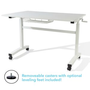 Sit, Stand, Stretch, You spend a lot of time at a desk. So, it’s vital for that desk to support your health, not just your monitor. The Atlantic 28-42″ height adjustable desk with rolling casters in white makes changing up your posture quick and easy. Simply adjust the height from 28″ to 41.3″ via a smooth-to-operate hand crank, which locks the desk securely in place during use. Its clean and simple design is executed in easy to clean laminate top, and a durable, powder-coated steel frame.