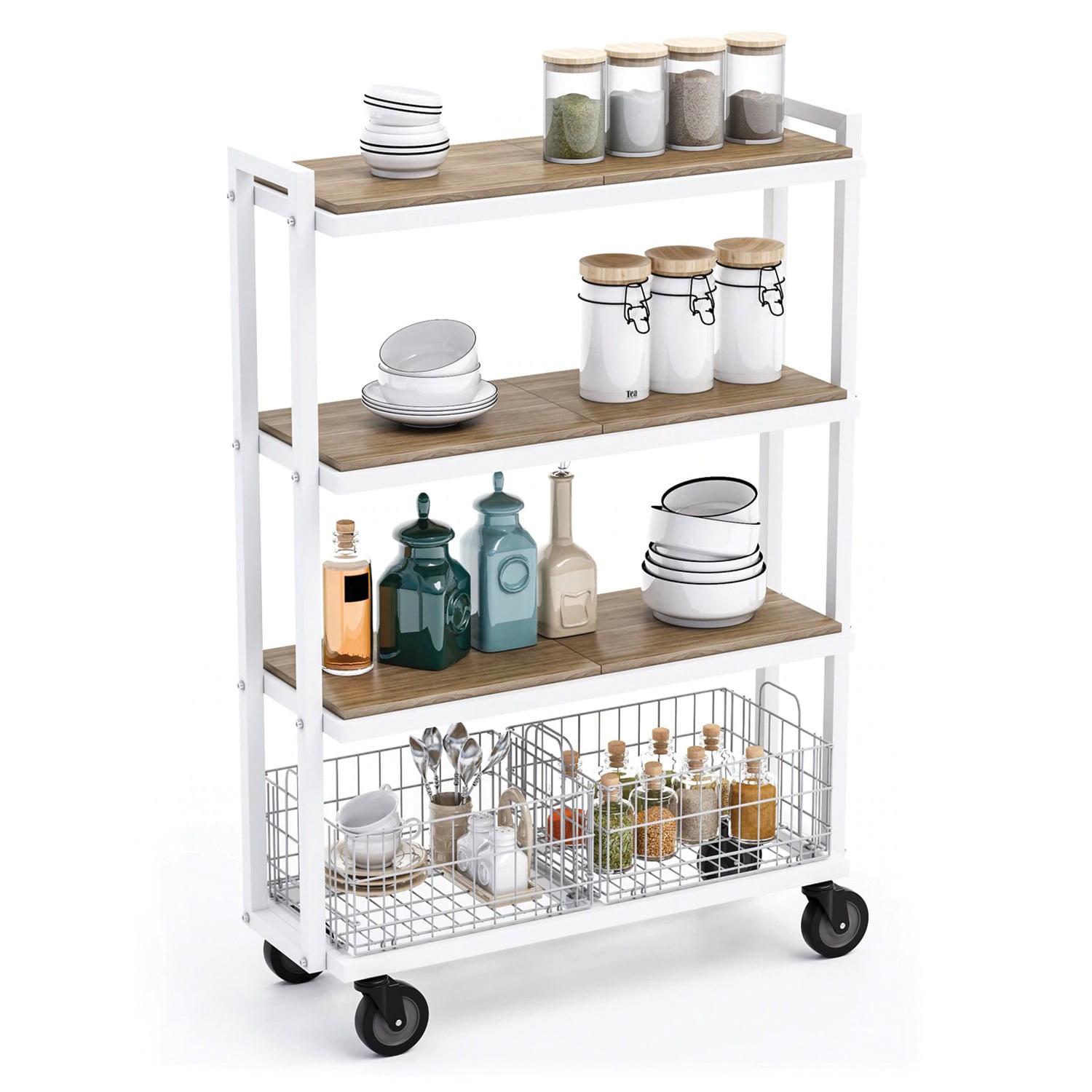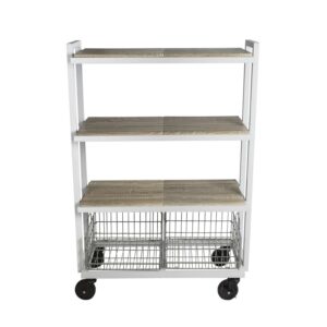 The Transformable 4-Tier Cart System provides efficient mobile storage for use in the kitchen, office or garage. Whether you are entertaining or just need extra storage, you can interchange shelves and baskets to suit your needs. The high quality steel frame is built for years of use.
