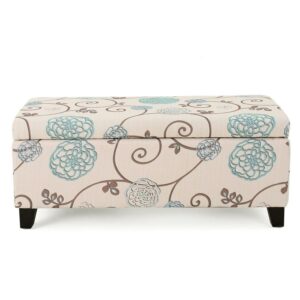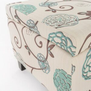 Practical and stylish, the Atwater Fabric Storage Ottoman makes a great addition to your home. Its birch wood frame is wrapped in fabric upholstery with lovely floral and vine print. It features a hinge top that lifts up to reveal ample storage space for blankets, board games, and more. It also works as additional seating for guests.