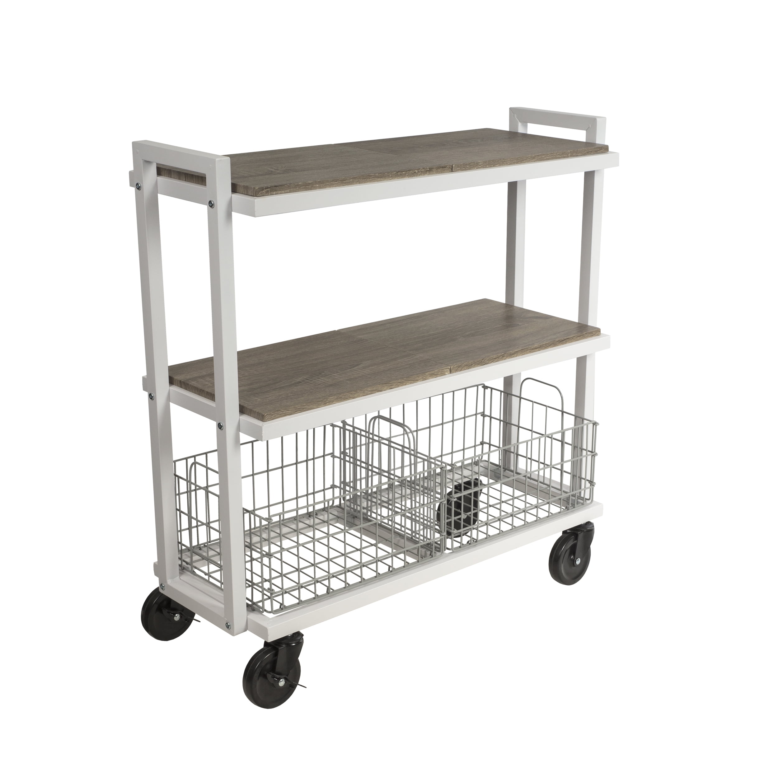 Optimus Prime, Megatron and—the Atlantic Transformable 3-Tier Cart System? Maybe they’re not exactly the same thing, but there’s definitely more to this Cart System than meets the eye. Reconfigurable shelves and stackable baskets means it changes as your needs do, and smooth-rolling casters let you take it from bedroom, to living room, to office and back again—whenever and wherever you want to maximize your space and storage. Features: Finish: White Durable powder coated tubular steel construction Material: Steel Four white premium laminated shelves Two light gray, sturdy, toteable wire storage baskets 1 sturdy, totable wire storage basket with liner Additional interchangeable basket and shelves available 4 casters (2 locking) for effortless movement Easy to Clean Specifications: Included: Hardware Product Color: White / Gray
