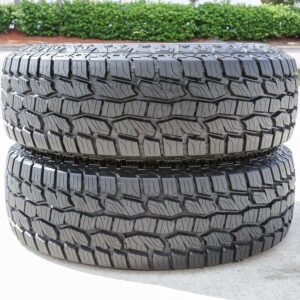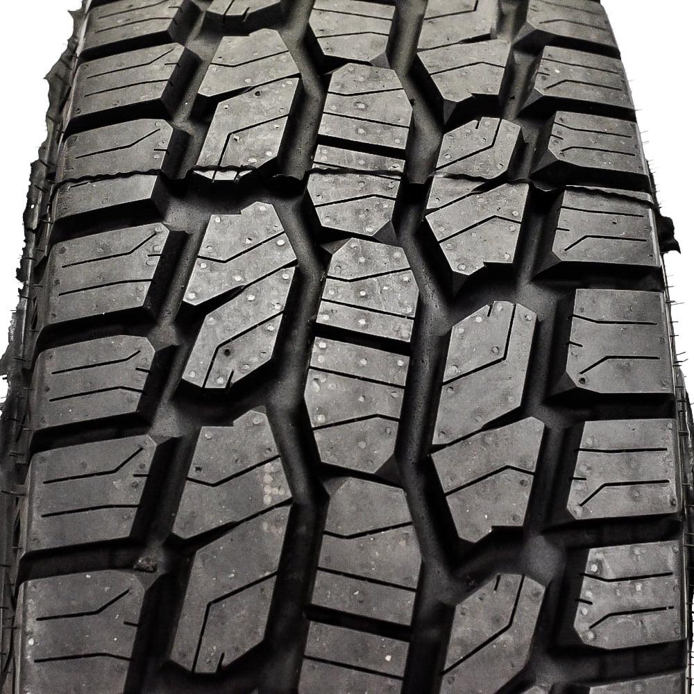 The tire offers great all terrain traction by utilizing the aggressive tread design. The staggered blocks, the wide grooves, the open shoulder pattern and the microgroove pattern work together to increase the tire’s grip on soft, loose and uneven terrain surfaces, while also promoting a secure on-road drive. They provide additional biting edges to grip the road surface while the tires are in motion on various terrain surface conditions. This prevents the tire from losing traction in deep mud or on soft dirt. The tread elements also keep the footprint clean from mud and snow. This maintains the tire’s surface contact at all times, further improving the off-road driving safety levels.