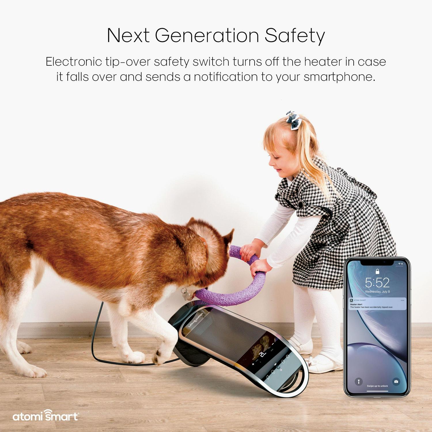 – Top-Notch Safety and Stability – Prioritize safety with the Atomi Smart Tower Heater. Receive instant notifications on your phone if the heater tips over, thanks to its innovative tip-over safety switch. It’s also equipped with overheat protection, a cool-touch housing and handle, and a wobble-free base, ensuring safe operation on any floor surface, including carpet. Rest easy knowing it’s ETL Certified for your peace of mind.
