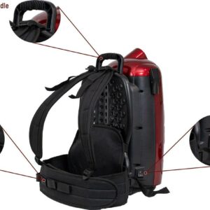Introducing the Jet Red HEPA Backpack Vacuum, the ultimate cleaning companion for residential and commercial use. This lightweight and powerful vacuum features a 1,400 Watt motor with 106 CFM suction power, ensuring thorough cleaning of dust, dirt, and pet hair. Its low profile backpack design weighs only 10 pounds, providing comfortable and easy maneuverability. The vacuum includes a variety of multi-surface tools for carpets, hard surfaces, upholstery, and hard-to-reach areas. With a 4-stage filtration system, including a HEPA bag, it effectively captures allergens and maintains a cleaner environment. The large hose opening reduces clogs for optimal cleaning performance. Equipped with a 30-foot hardwired power cord, it offers ample reach and eliminates cord length limitations. Upgrade your cleaning routine with the Jet Red HEPA Backpack Vacuum and enjoy effortless, efficient, and versatile cleaning performance.