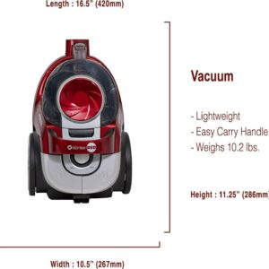 Embrace the lightweight and efficient Vortex Red Bagless HEPA Canister Vacuum, designed to revolutionize your cleaning routine. Built to handle tough messes effortlessly, whether it’s dog hair, dust, or debris, this vacuum ensures a pristine and fresh home. With its variable speed motor, adjusting the suction power becomes effortless, making it perfect for cleaning various surfaces. Say goodbye to the hassle of replacing bags, as this bagless vacuum features a 2.5-quart dust bin and washable HEPA and foam filters. With an impressive 1400-watt cleaning power and four levels of filtration, it guarantees a thorough clean every time. The comprehensive tool kit includes a handheld turbo brush and 3-in-1 multi-surface tool, effortlessly switches between surfaces and reaches baseboards, corners, stairs and hard-to-reach places. Its compact design allows for easy storage, making it ideal for homes, offices, apartments, condos, and even RVs. Two convenient carry handles ensure effortless handling. Experience a spotless home or workspace with the Vortex Red.