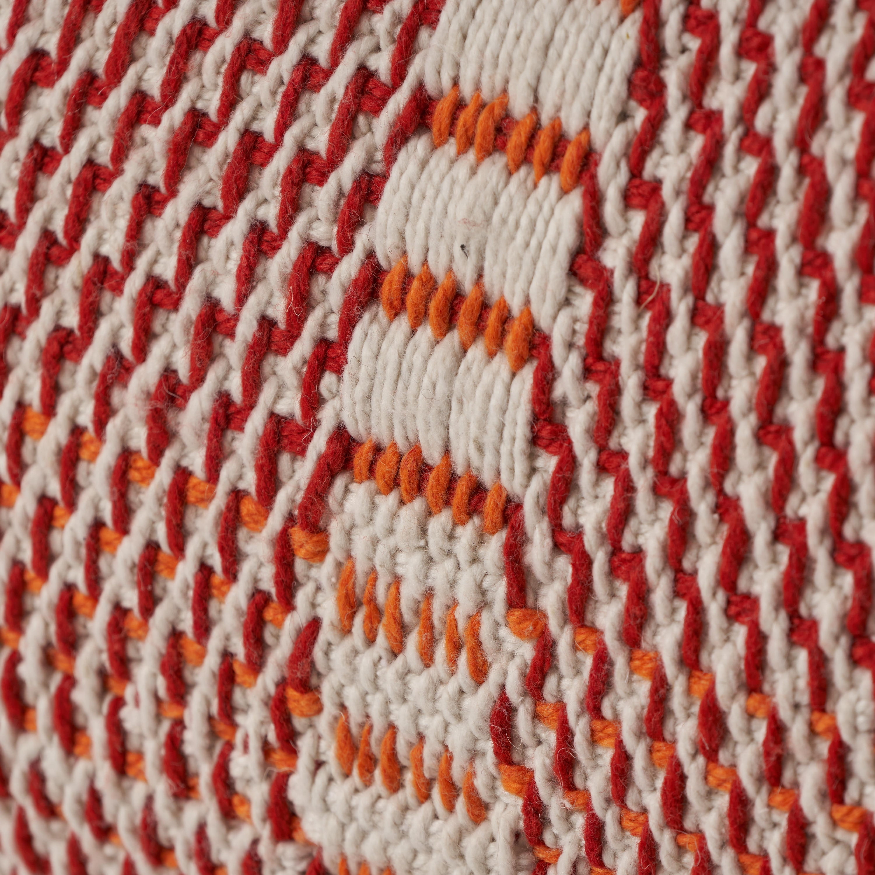 Looking for extra seating that can also act as decoration, a footstool, or even a coffee table? This pouf has it all. Featuring a modern linear design, this pouf offers your indoor or outdoor space an uplifting atmosphere with a finishing hand-crafted touch. Whether you’re looking to put your feet up after a long day or if you’re in need of extra plush seating, this pouf offers a variety of functions for you to discover. Seamlessly blending into any arrangement with its understated design, this pouf is not only one-of-a-kind but is also resilient, making this the perfect accessory. HANDCRAFTED MODERN DESIGN: Our handcrafted poufs are expertly designed and made using a centuries-old method. Featuring minimalistic colors and linear design, this pouf is a perfect addition to any indoor or outdoor decor. WATER-RESISTANT KNIT MATERIAL: This exquisitely knitted pouf cover consists of a plastic derived yarn, weaving natural linen colors with bold orange and red. With beautifully hand-crafted geometric lines, this cozy piece will be a delight in any home. Please note that this pouf is water-resistant and not waterproof. Please do not submerge in water. POLYSTYRENE BEADS: This pouf is filled with light, durable, and comfortable polystyrene beads that provide hours of sitting and relaxation. This filling comes in an inner liner, so you don’t have to worry about any mess. REMOVABLE COVERS WITH SAFETY ZIPPERS: You can easily remove your pouf cover for cleaning purposes after a long period of use. Just use the childproof safety zippers to unfasten the skin and slip out the inner filling. This product is spot clean only. DIMENSIONS: Choose an accessory that is the perfect size for you and your furniture. This pouf is 26.00” W x 26.00” L x 15.00” H. You will love how much your space can transform with the simple addition of this charming pouf.