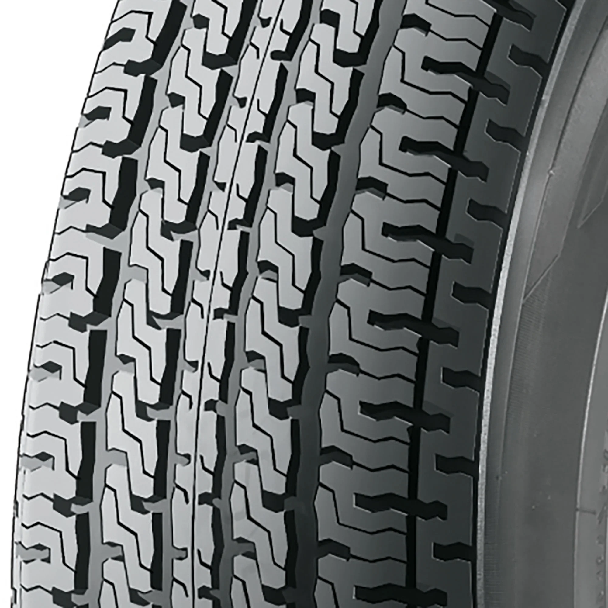 The Atturo ST300 is designed specifically for trailer applications – from utility trailers and RVs to boat and horse trailers. It is not for drive or steering axles of trucks, but instead optimized to perform under the unique conditions trailers experience. This tire boasts a reinforced internal structure and high load ratings (including 10-ply, 12-ply, and even 14-ply sizes), meaning it can handle substantial weight and pressure. When you’re towing, heat is the enemy of tires – the ST300 uses a special heat-dissipating tread design and durable compound to minimize heat build-up, even on long highway trips, thereby reducing the risk of blowouts. The tread pattern itself is designed for stability and even wear: it often has solid center ribs or interconnected blocks that help the tire track straight (preventing trailer sway) and deliver consistent contact for better control. The shoulders are squared-off to enhance lateral stability, which is important when crosswinds hit or during cornering with a trailer. For wet conditions, circumferential grooves help channel water and maintain grip, so your trailer stays obedient behind you in the rain. The ST300 also resists weather cracking – an important factor since trailer tires often sit unused for periods of time; UV and ozone resistant compounds help prolong its life. When parked or stored, the robust construction handles the weight without flat-spotting as much. Safety is paramount: the ST300 gives you the peace of mind that your trailer tires can handle the journey, allowing you to focus on the road ahead. Always inflate to the recommended PSI when towing to get the full benefit of its load capacity and performance. With Atturo ST300 tires, you can tow heavy loads confidently, knowing your trailer is riding on rubber that’s purpose-built for the task. Atturo ST300 – Special Trailer tire for trailers, campers, and RVs (not for driven wheels) High load rated – available in Load Range D, E, F, and G (up to 14 or 16 ply rated) to support heavy trailer loads with ease – great for large RVs, 5th wheels, and utility trailers hauling equipment Enhanced stability – stiff sidewalls and a solid center rib reduce trailer sway and improve tracking, keeping your trailer straight and stable even at highway speeds Heat resistant design – optimized tread pattern and heat-dissipating compound minimize heat build-up during long tows, reducing the risk of blowouts and extending tire life Long-lasting tread – robust tread blocks ensure even wear across the tire, while the rubber formula resists weather cracking and UV damage during storage (helps maintain integrity over time) All-weather reliability – grooves in the tread provide traction in wet conditions, and the tire is M+S rated for use in light mud or snow if needed (for example, towing in shoulder seasons), so you have dependable performance in various conditions