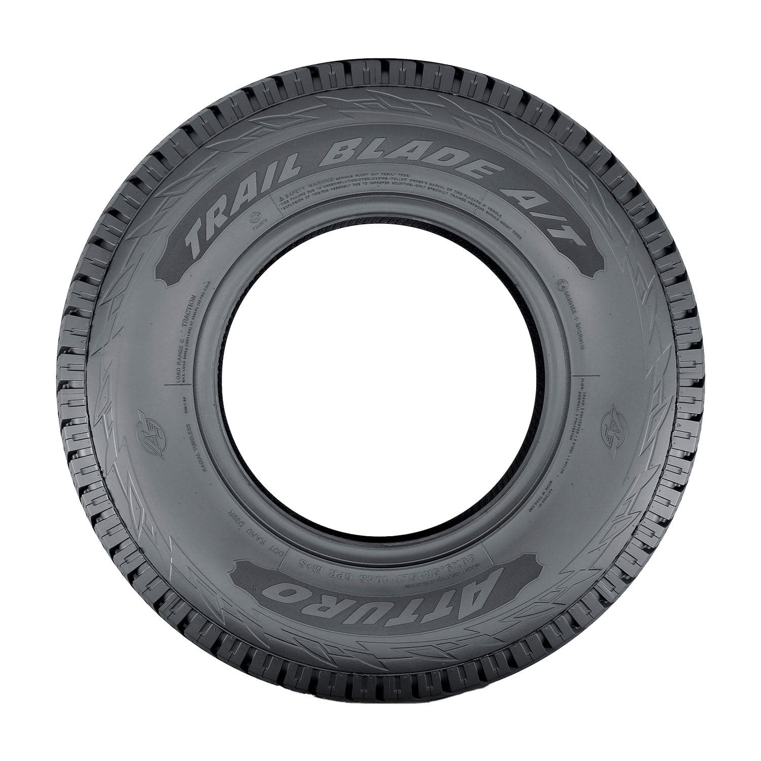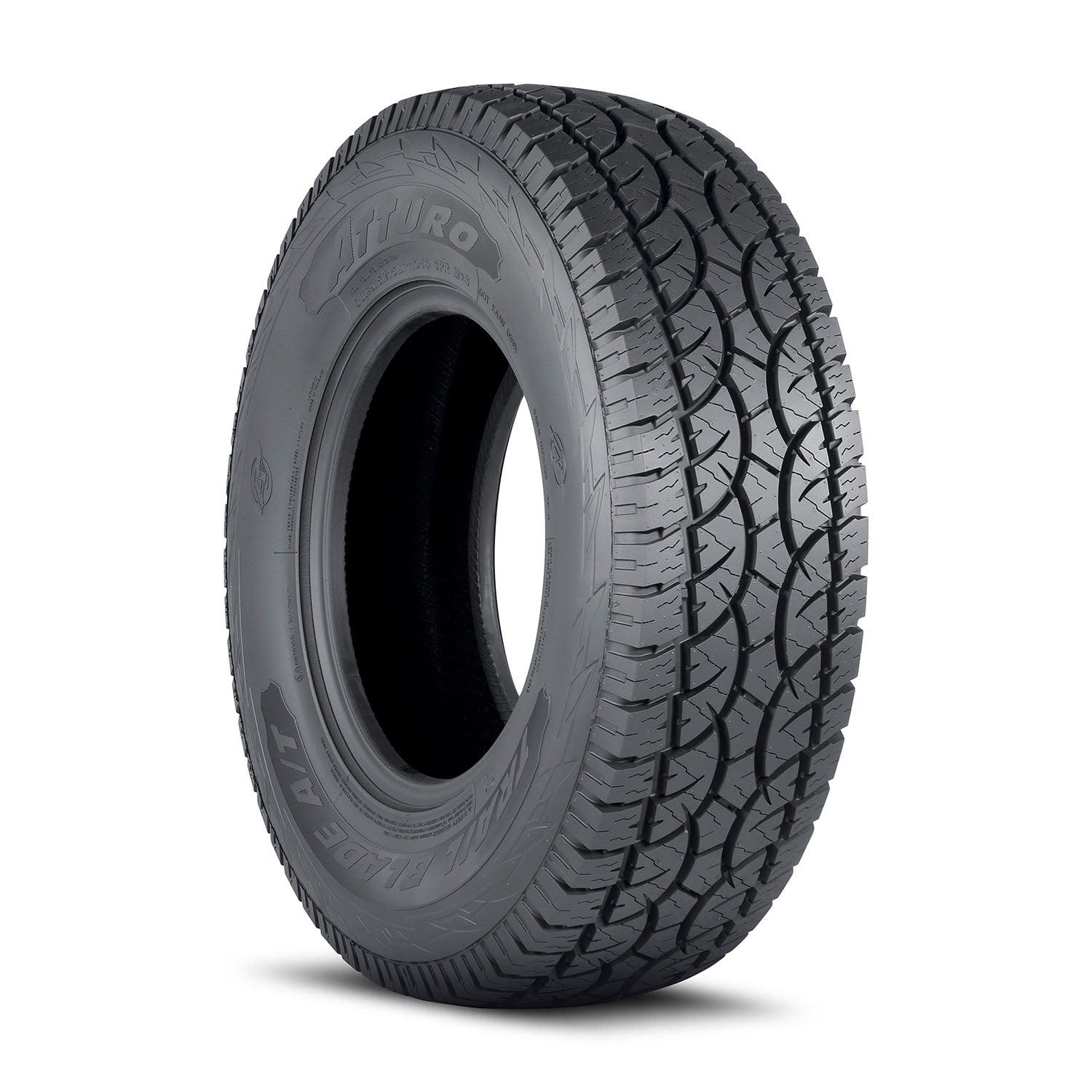 Atturo Trail Blade A/T 245/65R17 107TOVERVIEWThe Atturo Trail Blade A/T tire is designed for use on light trucks and SUV and offers drivers better traction and performance on- and off-road. A durable rubber compound protects the tire against damage for a longer tread life, and the Trail Blade A/T’s heavy-duty carcass boosts load carrying capacity. Large shoulder blocks improve handling performance, and the Trail Blade A/T’s deep sipes improve grip on muddy, wet, and snowy surfaces while wide grooves channel water out of the footprint to reduce the risk of hydroplaning on wet roads.