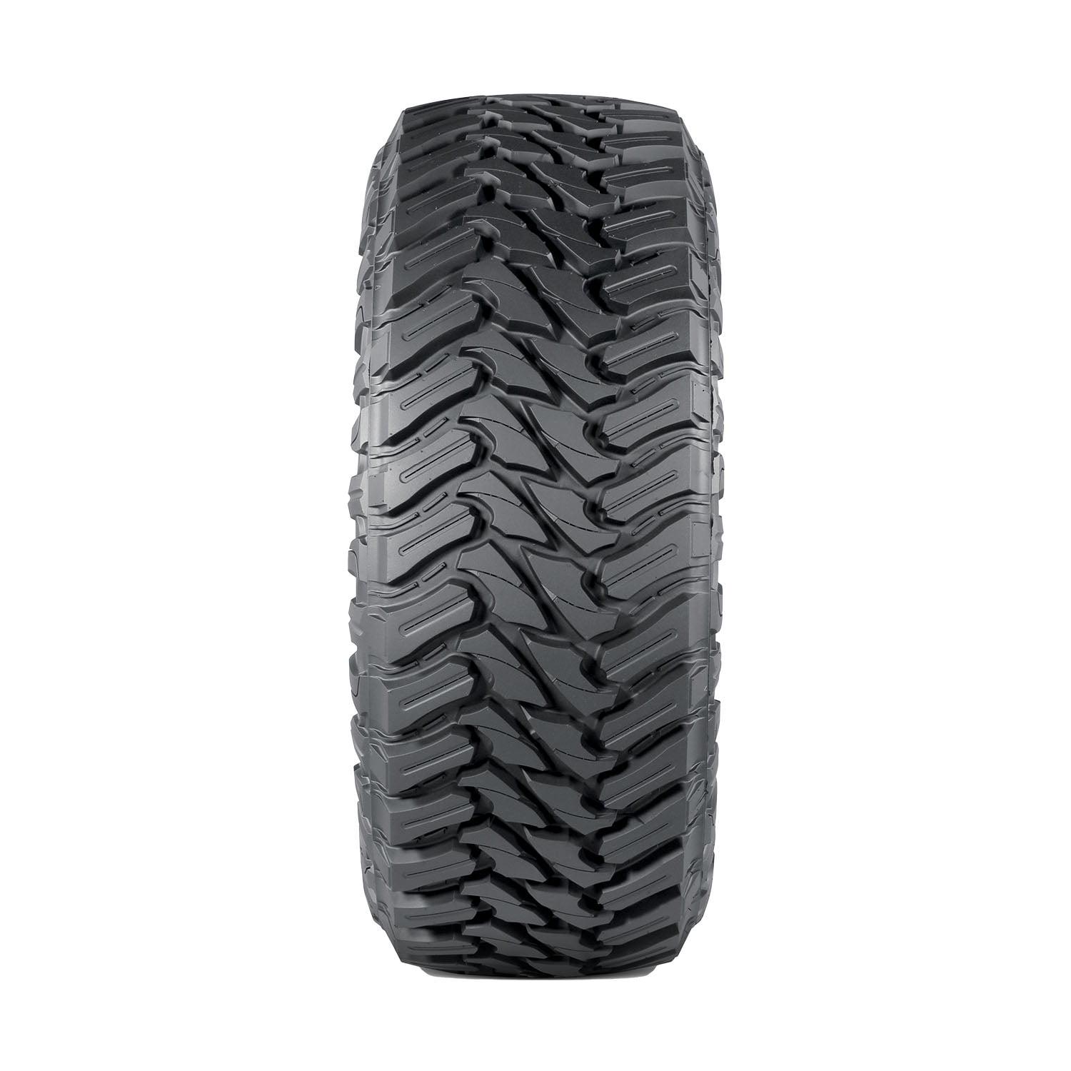 - Wraparound lugs at shoulder boost lateral traction in ruts