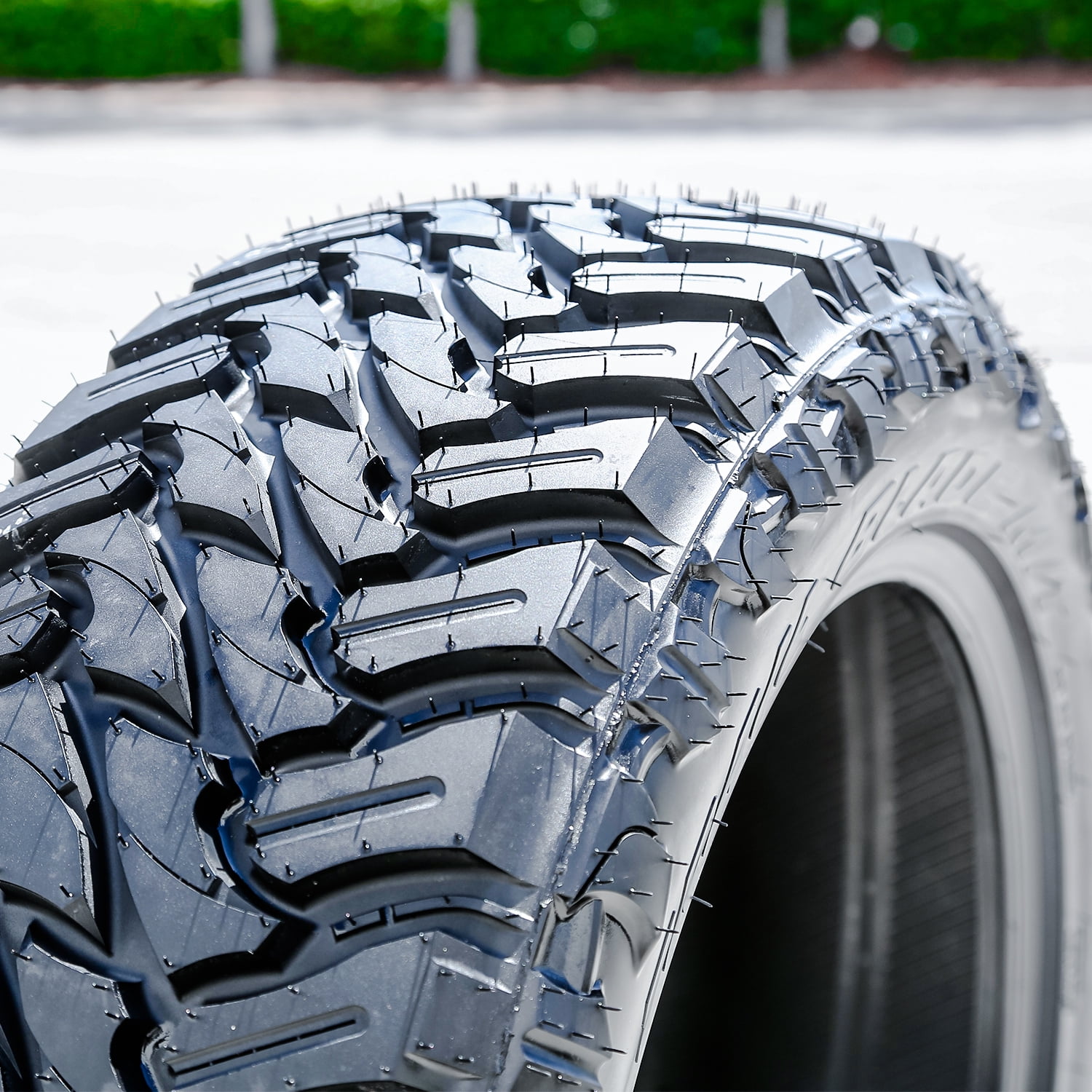 Atturo Trail Blade M/T OVERVIEW The Atturo Trail Blade M/T is a mud terrain all season tire manufactured for light trucks and SUVs. The tire promotes excellent all weather traction. The tread pattern with the deep tread elements increases the dry, wet and winter weather road gripping ability. The large tread blocks firmly grip the road surface in all weather and ensure a safer driving experience. The wide grooves manage to resist hydroplaning by channeling water and slush from below the tire’s footprint. The individual tread elements also manage to disperse mud and snow from between the tread elements to keep them from blocking the tire from its contact with the road surface. The specialized tread features open shoulders, large staggered tread blocks, wide grooves and a detailed upper sidewall design. They work together to enhance the tire’s traction on soft and loose road surfaces and ensure a safer off-road drive. The aggressive sidewall design improves the tire’s performance in deeper mud and sand, allowing it to find traction on all off-road surfaces. The tread’s self-cleaning nature manages to eject rocks stuck between the tread elements to prevent stone retention, which can cause harm to the tire’s casing. The large tread blocks on the tire’s center and shoulder areas upgrade its controllability. The shoulder tread blocks boost the cornering and maneuvering ability and power. They enhance the number of biting edges that grip the terrain surface and promote a safer driving experience. The center tread area increases the steering responsiveness and driving stability. In other words, the steering is faster and more precise in its responsiveness to the driver’s instructions, while the tire’s structure is stabilized against the driving pressure affecting it. As a result, the driver is capable of confidently controlling the vehicle on soft and loose terrains and in all conditions. The Trail Blade M/T offers great uniformity. The internal structure features an aluminum segmented mold and a three-ply structure that maintain the tire’s optimal shape under the off-road driving pressure. In this manner, the model does not deform under the driving pressure affecting the tire’s during the drive and ensures a comfortable off-road driving experience. The intended purpose of Mud Terrain tire types is off-road use. They are not designed for regular highway driving. Not all tire sizes are suitable for all vehicle types. Please refer to the item specifications for accurate information about vehicle type fitment for this particular size. Manufacturers recommend changing tires every 10 years. As long as tires are properly stored before they are sold, the year of their manufacture will not shorten their service life.