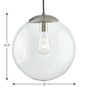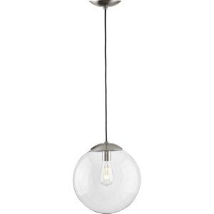 Embrace a statement-making lighting design with the Atwell Collection 1-Light Glass Globe Brushed Nickel Modern Pendant Light. A light source glows from within a clear glass globe shade that fosters a soft and ending design. The metal cap and light base are coated in a beautiful brushed nickel finish that accentuates the hanging light’s modern aesthetic. For ideal illumination, use 1 medium base bulb that is sold separately (60w max – LED/CFL/incandescent). Compatible with dimmable bulbs. The pendant’s circular design is ideal for any foyer, dining room, kitchen, breakfast nook, entryway, living room, or bedroom in luxe, mid-century modern, modern, and transitional style settings. May be grouped as a single light or mixed and matched in groups. It’s time to breathe new life into the mundane every day with timeless and truly transformative lighting. Make your purchase today to begin your journey to a whole new lighting experience. Progress Lighting products are designed for exceptional quality, reliability, and functionality.