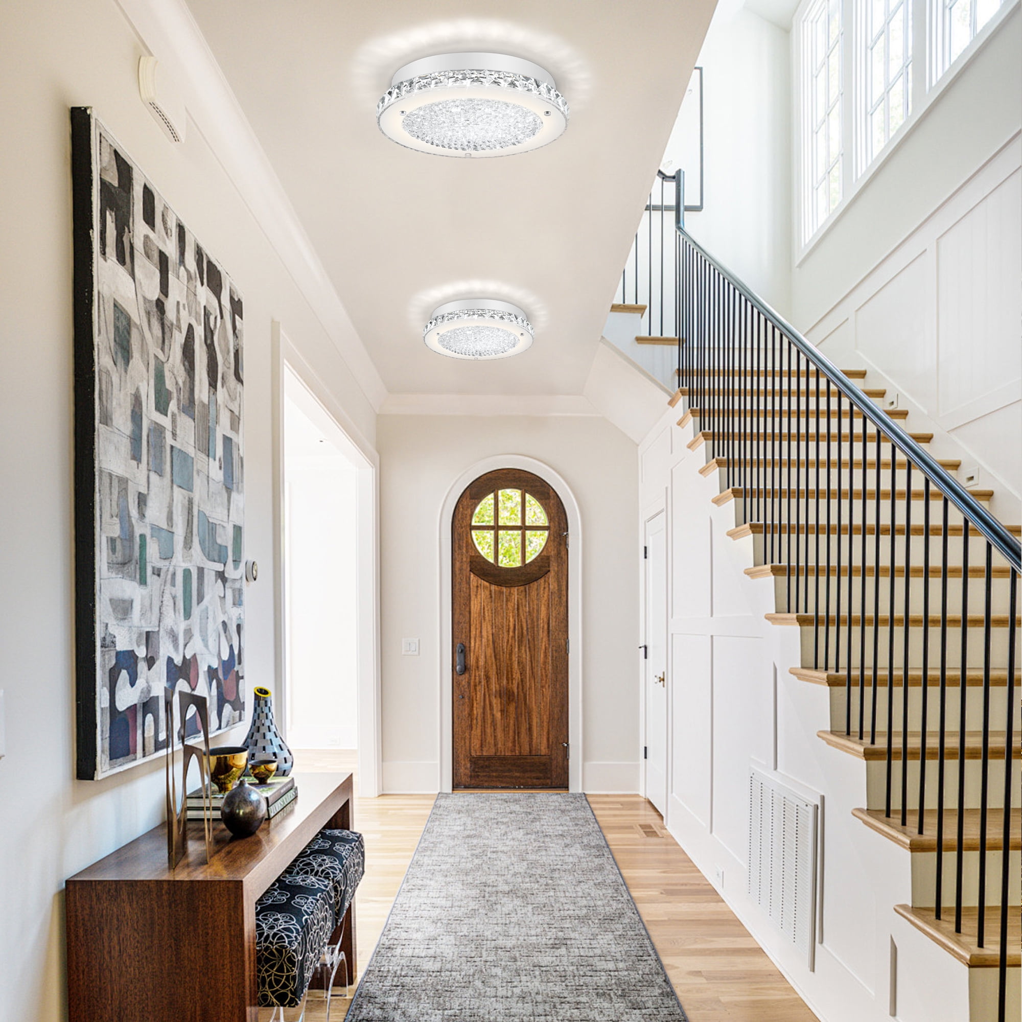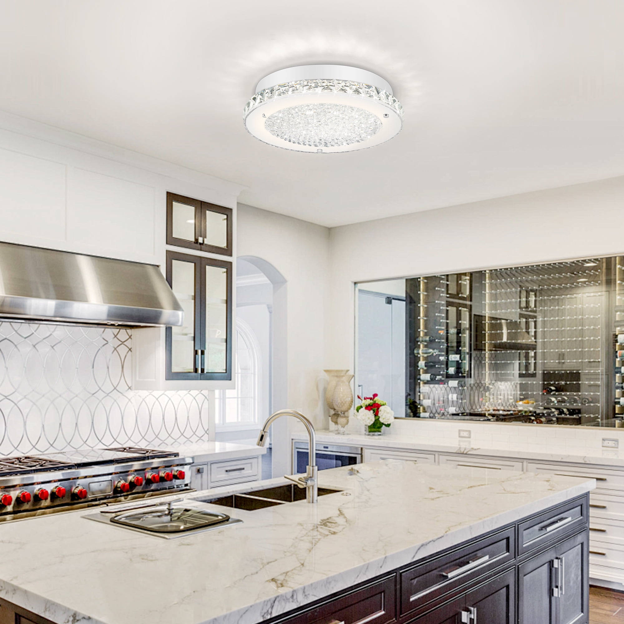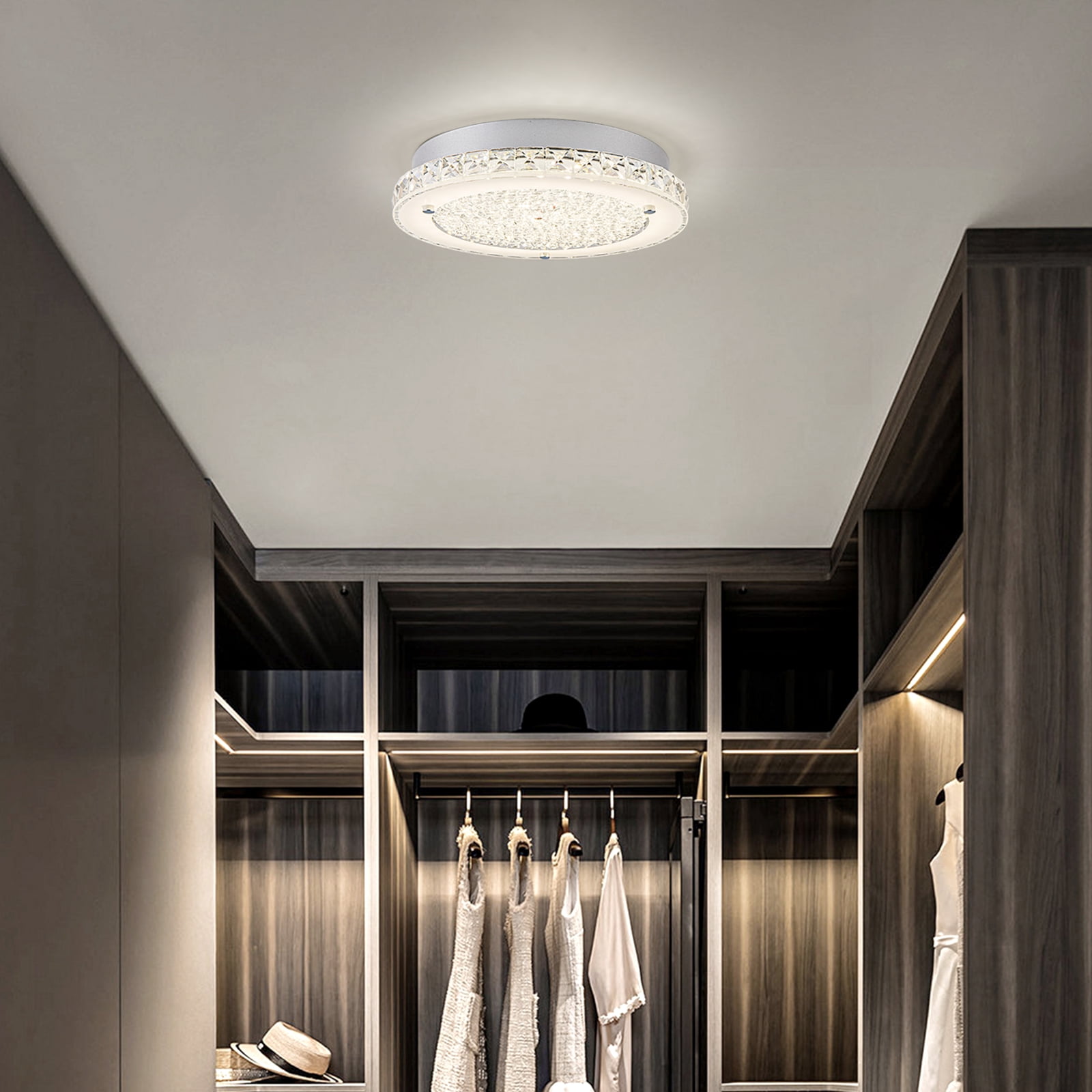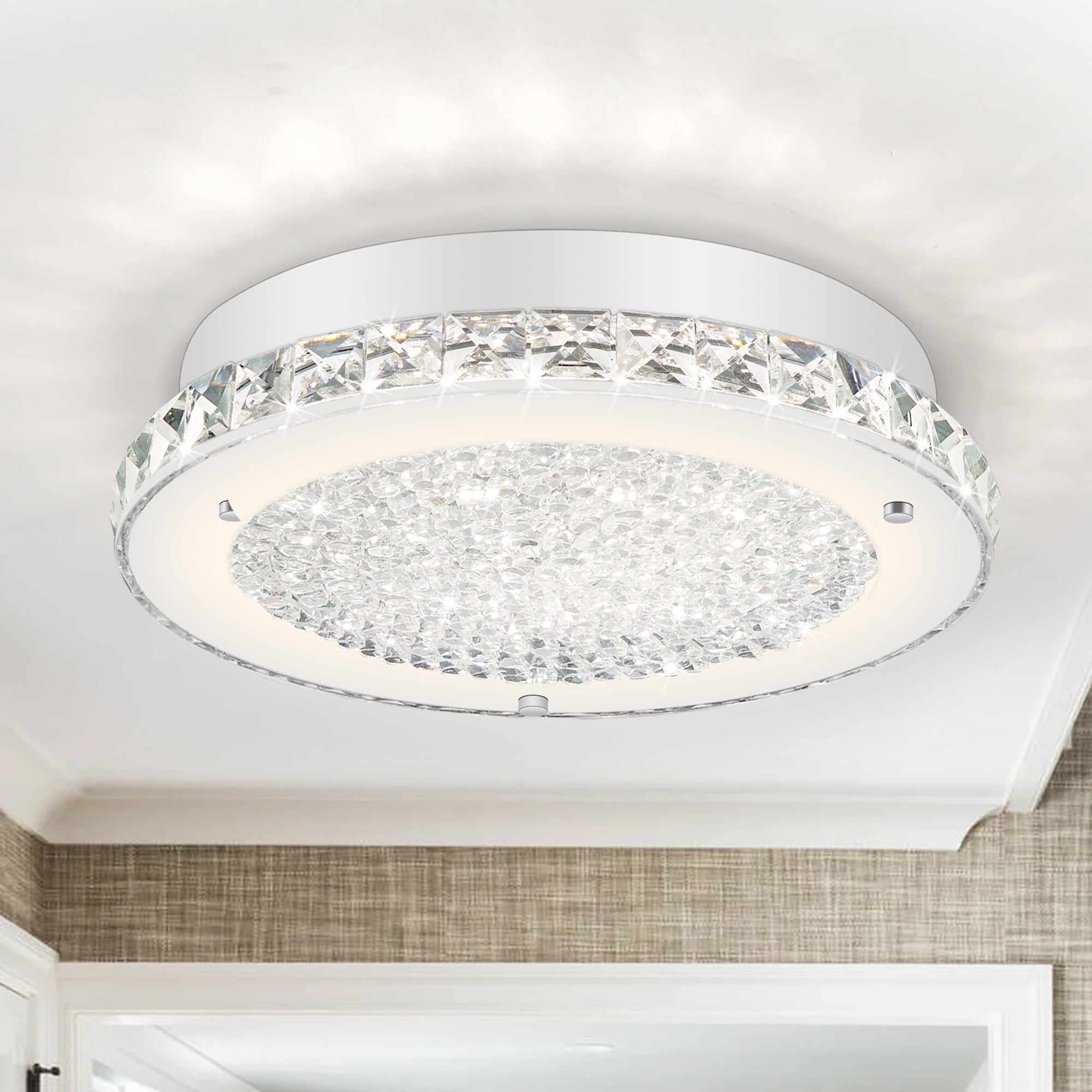 Auffel LED Kitchen Light Fixture for Ceiling Light Fixture,11 Inch Crystal Ceiling Light for Bathroom Hallway Living Room Dimmable 4000K Super Bright