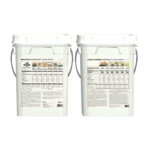 This Augason Farms duo of pails offers plenty of food and flexibility. At an average of 2,062 calories per day, food will keep 2 people well-nourished for about 10 days, or 1 person for about 20 days. It can be used to augment your 72-hour or 30-day food supplies or to help neighbors, friends or family who may need an extra bit of assistance. This is also an excellent solution for preparedness at work, at the cabin or in an RV (where emergency food doubles as easy-to-prepare campfire food!).