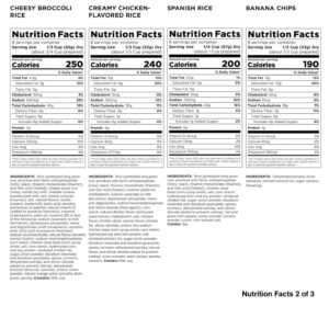 – Nutritionally balanced with entrées, soups, breakfasts, dry powdered milk, and fruit snack