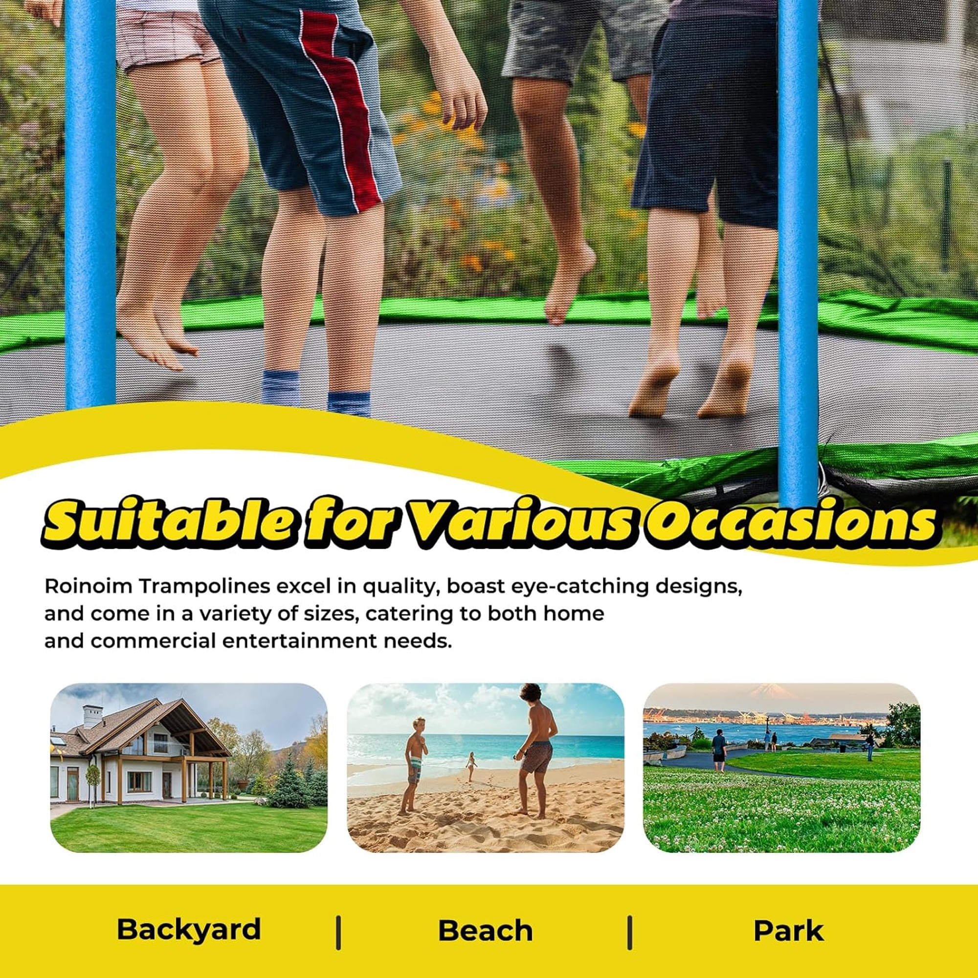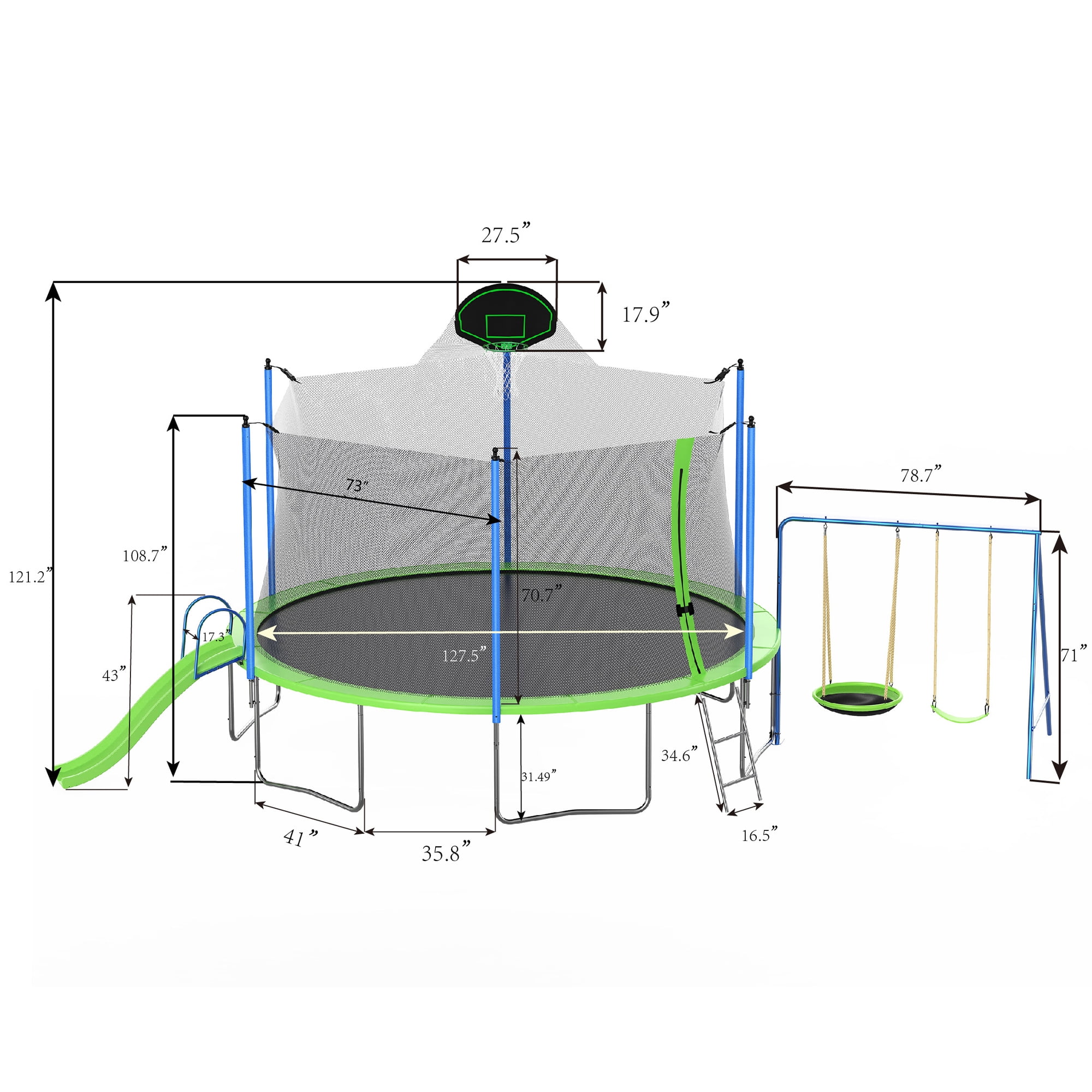The Aukfa AK-ST01-008 Experience ultimate fun and adventure with our versatile 12FT Trampoline Set! This outdoor recreational trampoline with a plastic slide, swings, and a basketball board, offering endless entertainment for kids and the whole family. Crafted with premium quality and safety in mind, the trampoline features a sturdy reinforced frame and durable materials, ensuring it can handle active play while keeping users safe. Watch as young children’s creativity and imagination soar with the exciting swing and slide combo, promoting physical activity and endless playtime fun. Take the fun to new heights with the basketball board, allowing kids to practice their shooting skills while bouncing on the trampoline. Get ready for a world of laughter, activity, and slam-dunk fun!