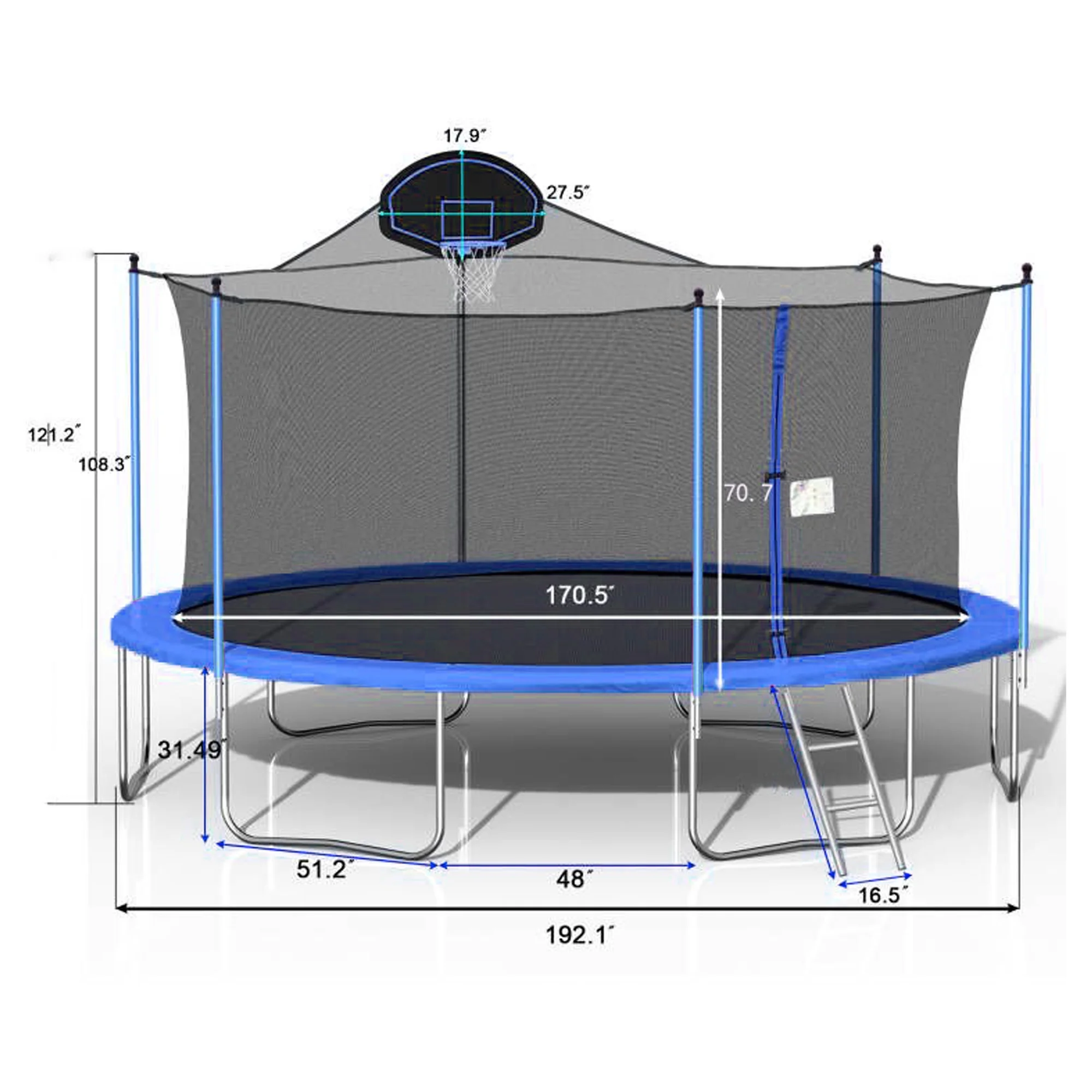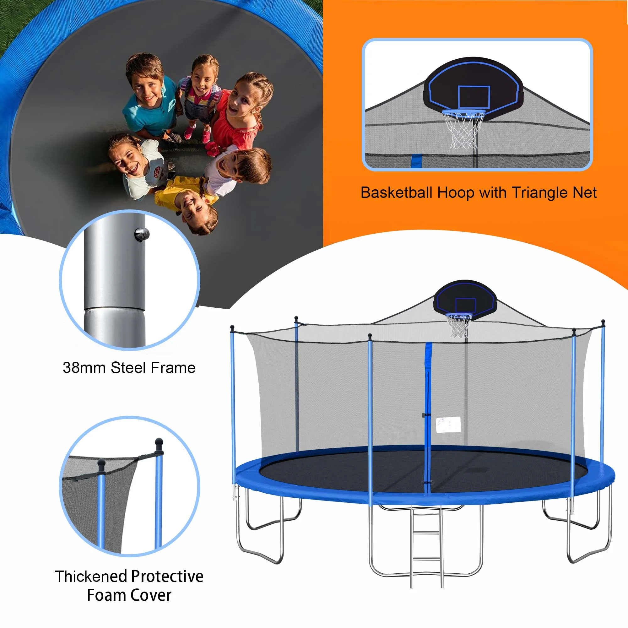 Aukfa 16FT Trampoline with Basketball Hoop for Kids Adults, Outdoor Trampoline with Enclosure for Backyard – Blue