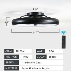 Aukfa 19.7 Bladeless Ceiling Fan with Light – Flush Mount Design – Remote Controlled – Adjustable LED Lights – Multiple Speed Settings