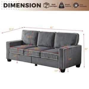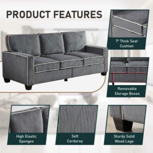 Aukfa 3 Seater Sofa with Storage, 81 Wide Upholstered Couch for Living Room, Corduroy, Dark Gray