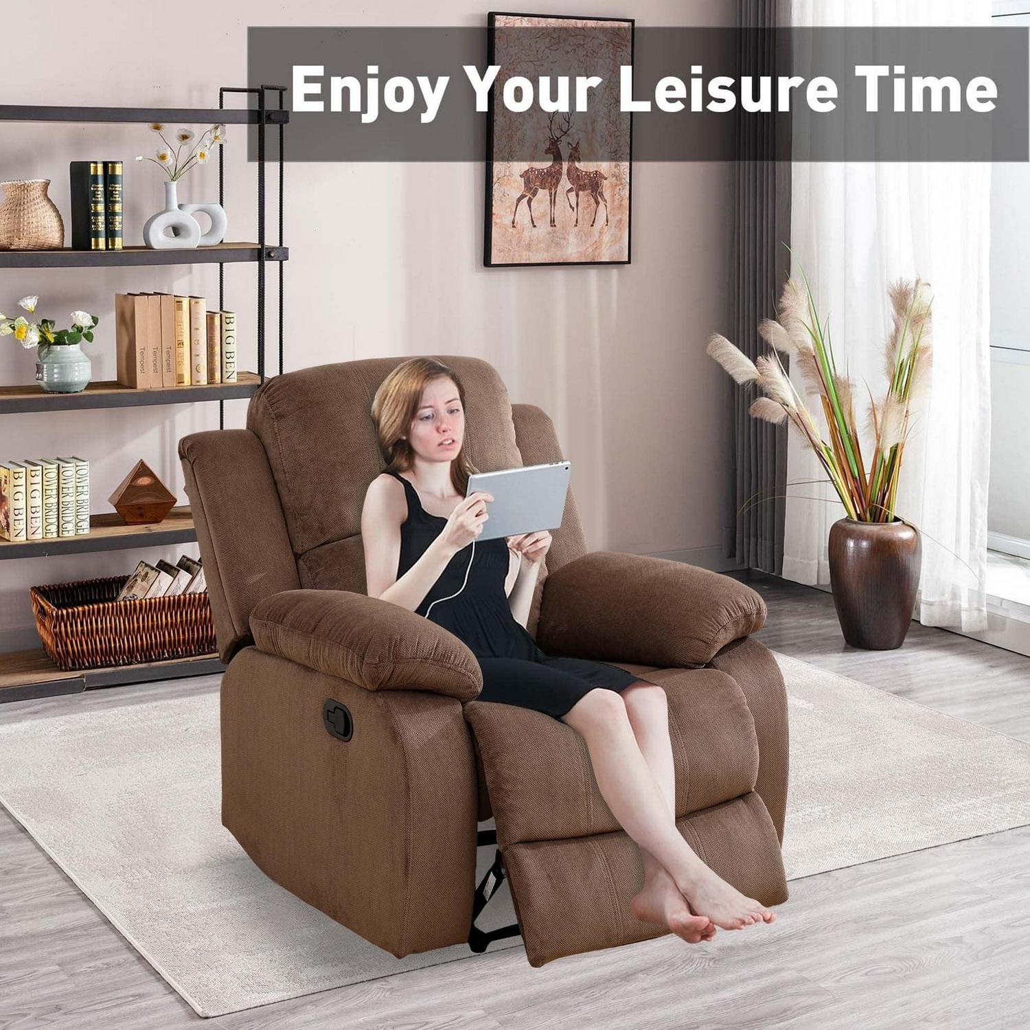 Aukfa 38 Manual Recliner Chair, Overstuffed Single Sofa for Living Room Bedroom, Corduroy, Brown