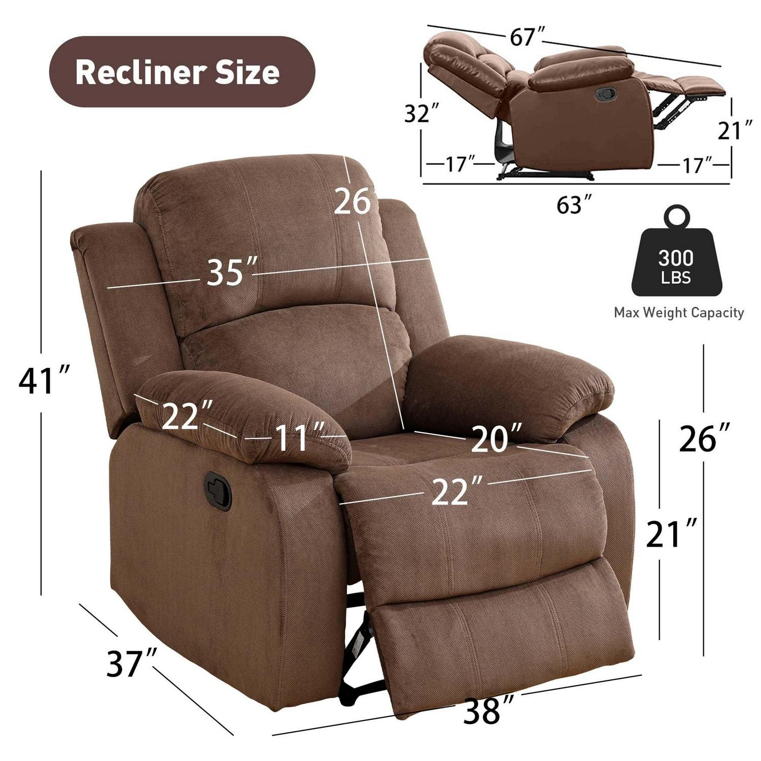 – EASY ASSEMBLY AND MAINTENANCE – All you have to do is take all parts of the modern recliner from the shipping box and then attach the back of the chair to its seat by aligning the metal grooves. Back cushions and arm pads are designed to be easy for removing and clean, just clean them with a dry or damp lint-free cloth.