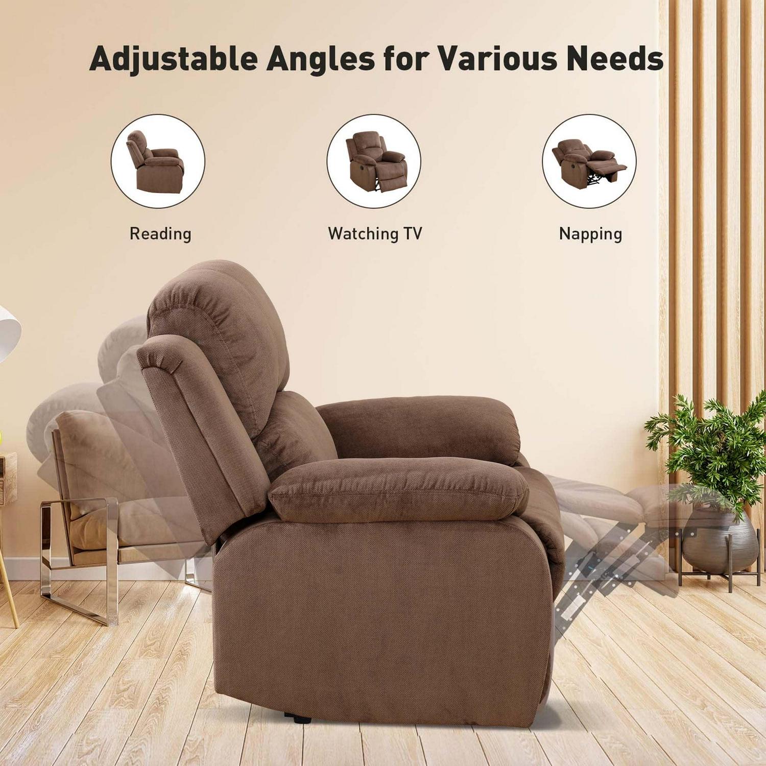 – CONVENIENT TO USE – The footrest will pop out automatically after pulling out the control button. With the elbows putting on the armrests, the manual recliner chair will recline freely when you lean backward with some strength. You will get a wonderful height for resting or sleeping. Also great for watching TV or reading books after work.