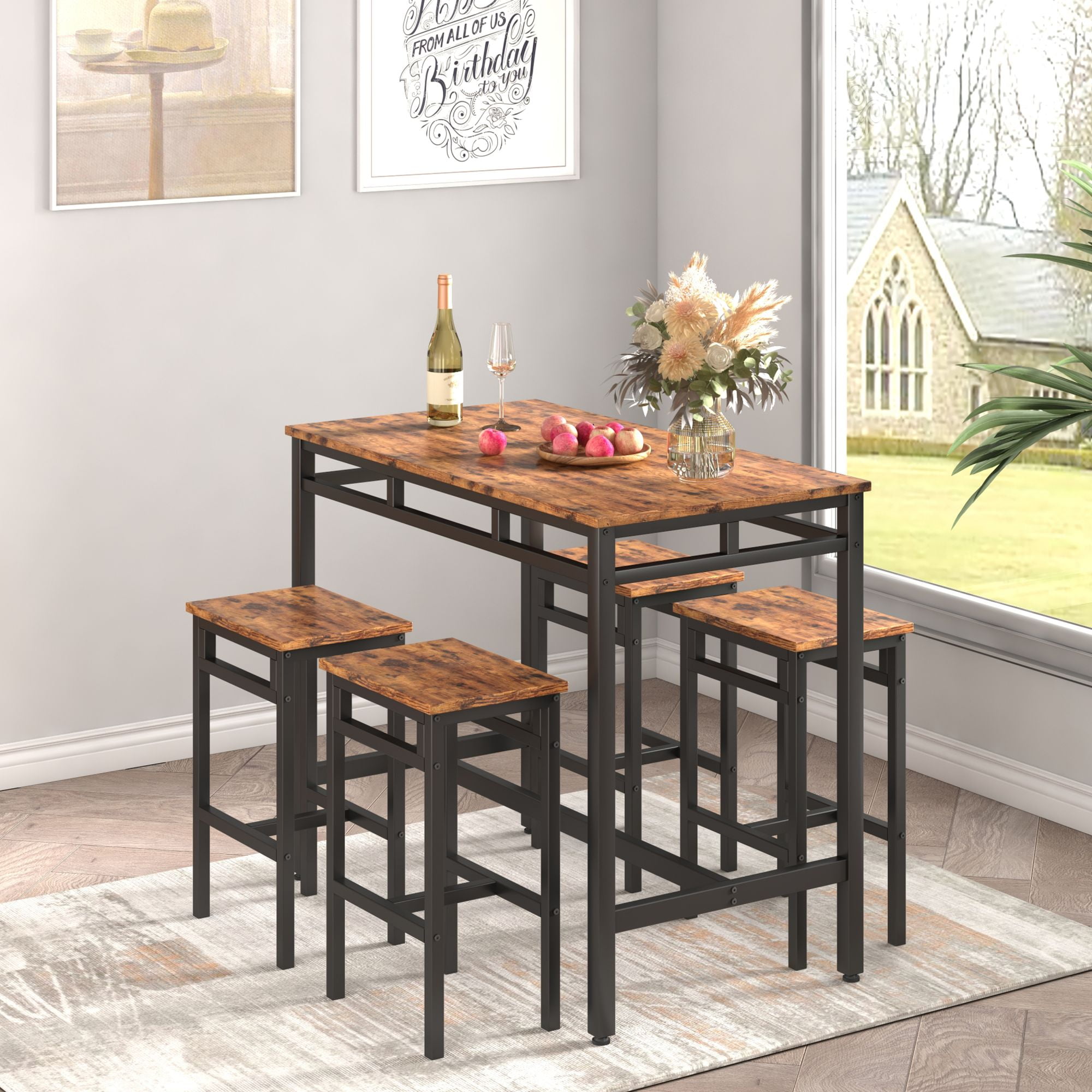 Aukfa 5-Piece Counter Height Dining Set, Bistro Pub Table Set with 4 Stools for Small Space, Rustic Brown