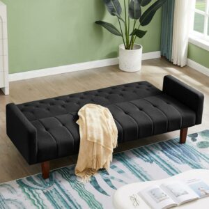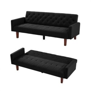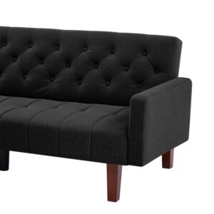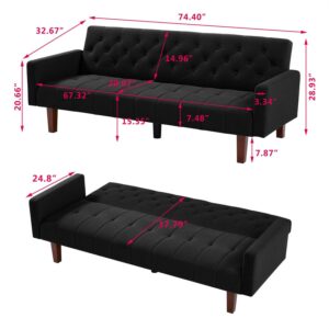 Aukfa 75 Square Arm Futon Convertible Sofa for Home Office, Button-Tufted Back, Black