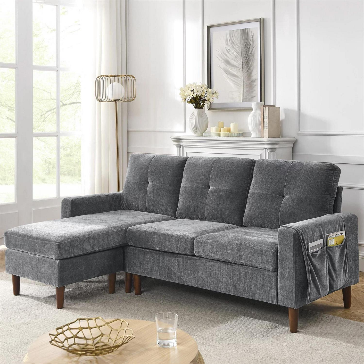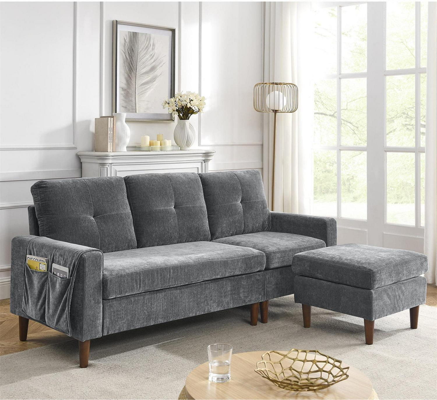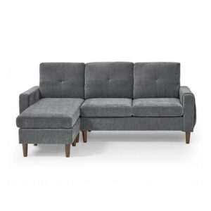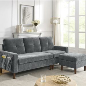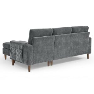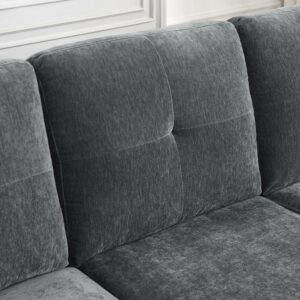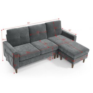 Aukfa 80 Sectional Sofa for Living Room, 3 Seater Couch with Reversible Ottoman, Chenille, Dark Gray