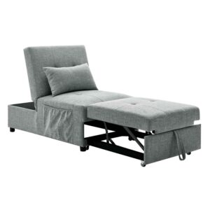 The Aukfa AK-FS02-011 Convertible Sofa Chair gives a twist to convenience and comfort. This 3-in-1 Pull-out Sleeper Sofa Bed is ideal for those looking to save space. There are 3 different angles to choose for reclining, 105°, 143°and 180°, this futon chair can be a comfy plushy accent chair or ottoma that transforms into a lounger chair with a sturdy back, which can transform into a sleeper bed. Padded with high-density sponge and covered with comfort linen fabric, the pull-out sleeper chair gives you comfortable sitting experience. The soft pillow provides you with adequate lumbar and neck support. Sturdy metal frame ensures longer reliable usage and 250 lbs weight capacity. Great for offices, guest rooms, living rooms and small space.