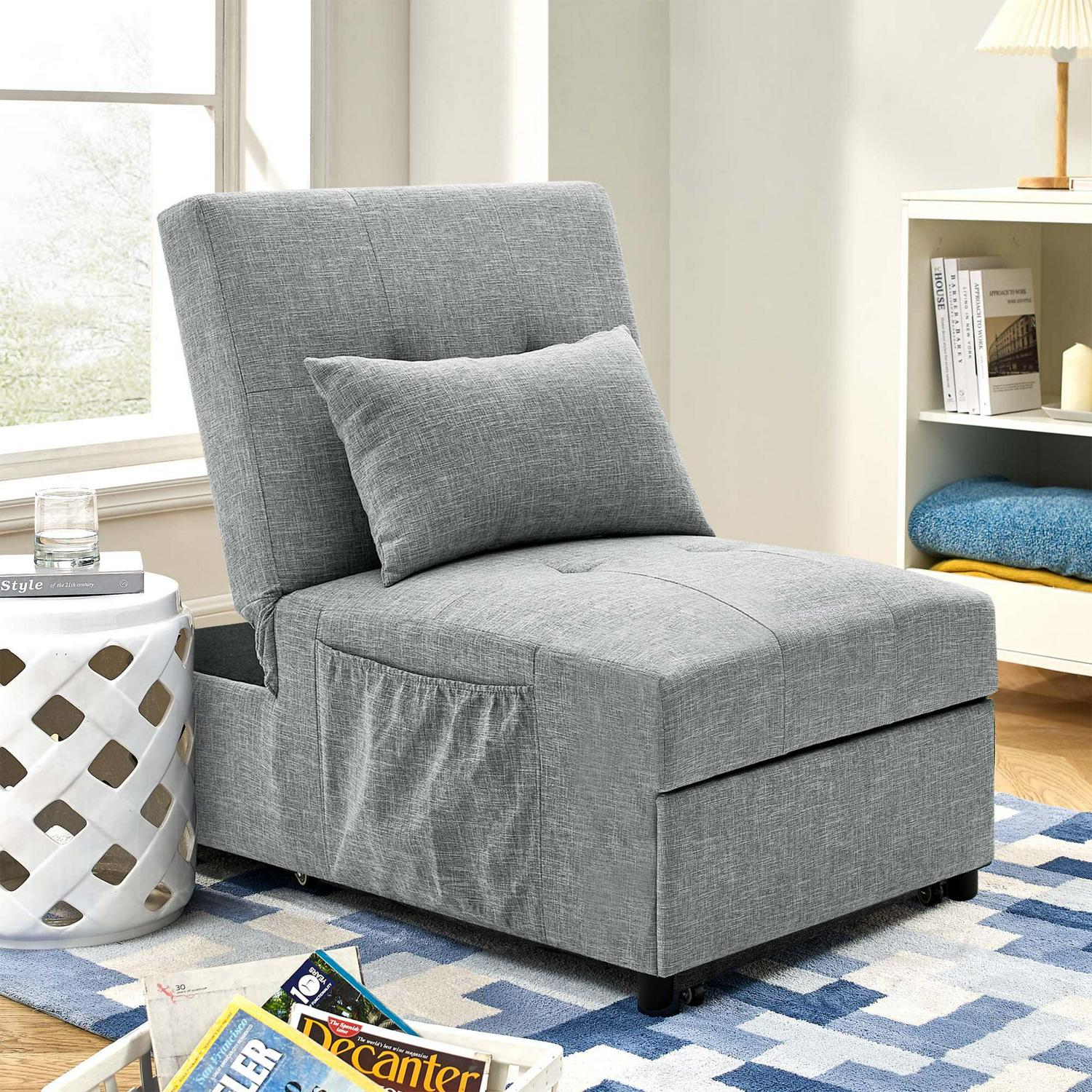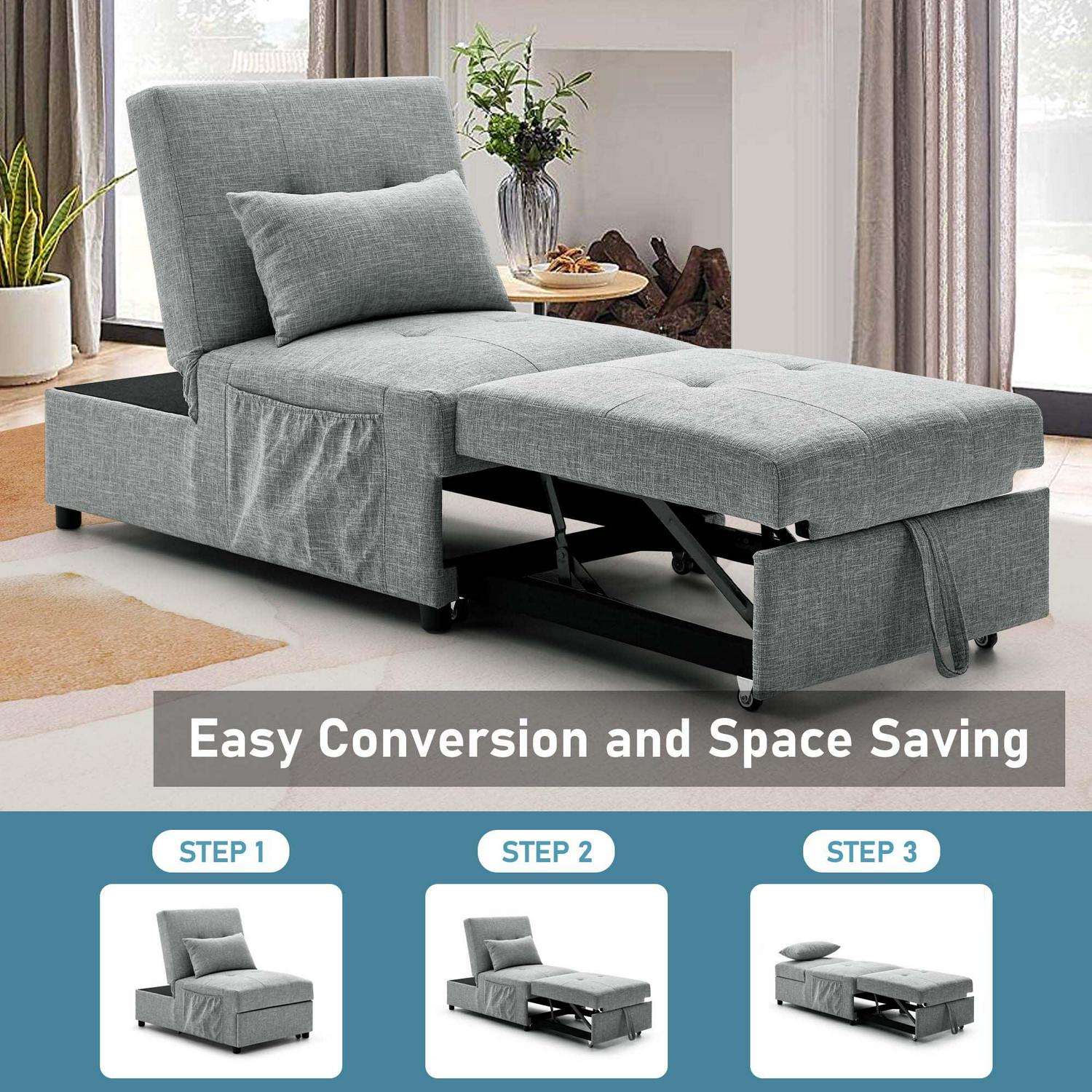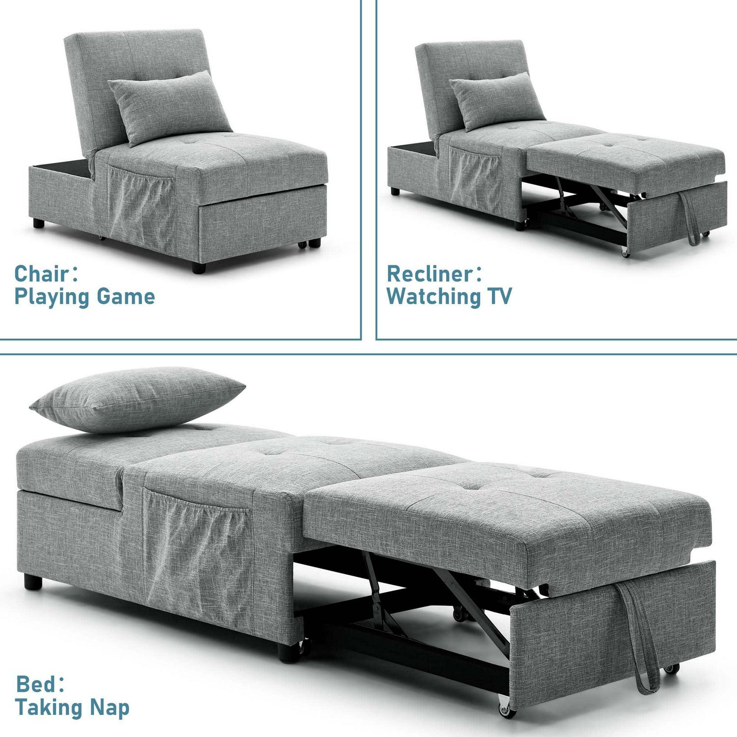 4-IN-1 CONVERTIBLE DESIGN – This versatile sofa chair bed can be easily and quickly converted into an accent chair, ottoman, a guest bed, as well as a recliner which is great for watching TV, reading, or taking a nap. Which is great chair beds for your family.