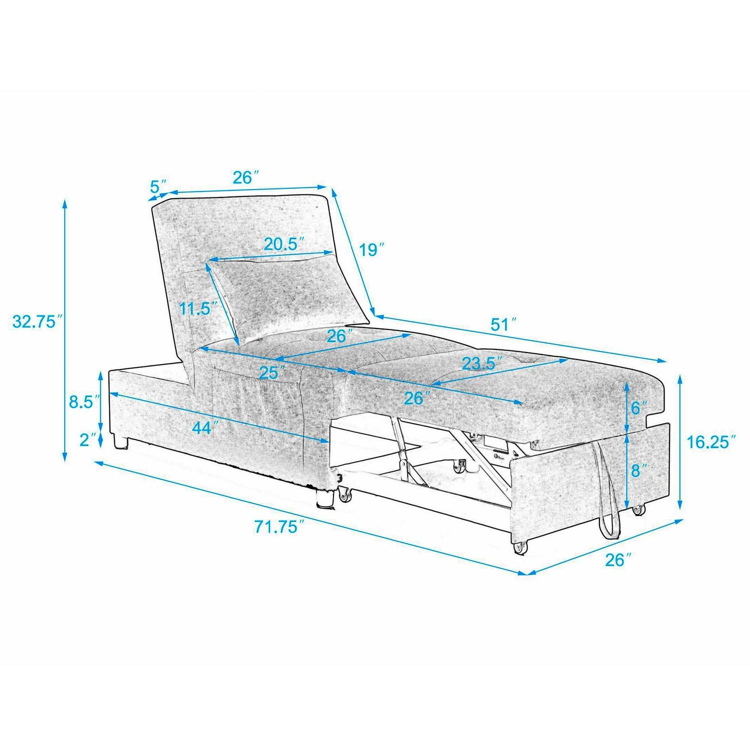 SUITABLE FOR ANY OCCASION – The compact folding design makes the sofa bed perfect for small rooms, like apartments, studios, offices, dorms. No need to worry about not having a place to entertain overnight guests. Chair dimension: 44″ x 26″ x 32.75″(L x W x H), pull-out bed dimension: 71.75″ x 26″ x 16.25″(L x W x H). Please note that color difference may occur between different lights and monitors.