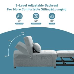 ADJUSTABLE BACKREST – The backrest of the sofa bed is adjustable within 3 reclining angles (105°,143° and 180°) so that you can choose the perfect angle you like to accompany your work, leisure, and relaxation time all day long. You can adapt to different scenarios from different angles, whether you want to be sitting, lounging, or sleeping. More, the sleeper sofa comes with a soft pillow for sleeping or added lumbar support.