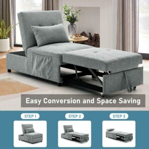 Aukfa Futon Sofa Bed Chair, 4 in 1 Pull Out Convertible Sleeper Chaise for Small Space Living – Gray