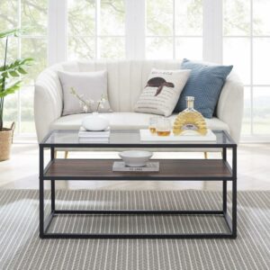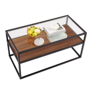 Aukfa Glass Coffee Table – 2 Tier Rectangular Modern Center Table for Living Room – Black
